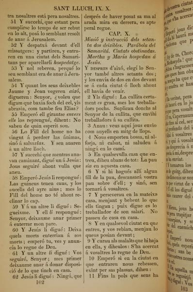 1835年加泰罗尼亚语新约全书 路加福音 9 章 51 节到 10 章 11 节