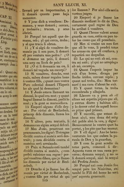 1835年加泰罗尼亚语新约全书 路加福音 11 章 9 节到 11 章 30 节