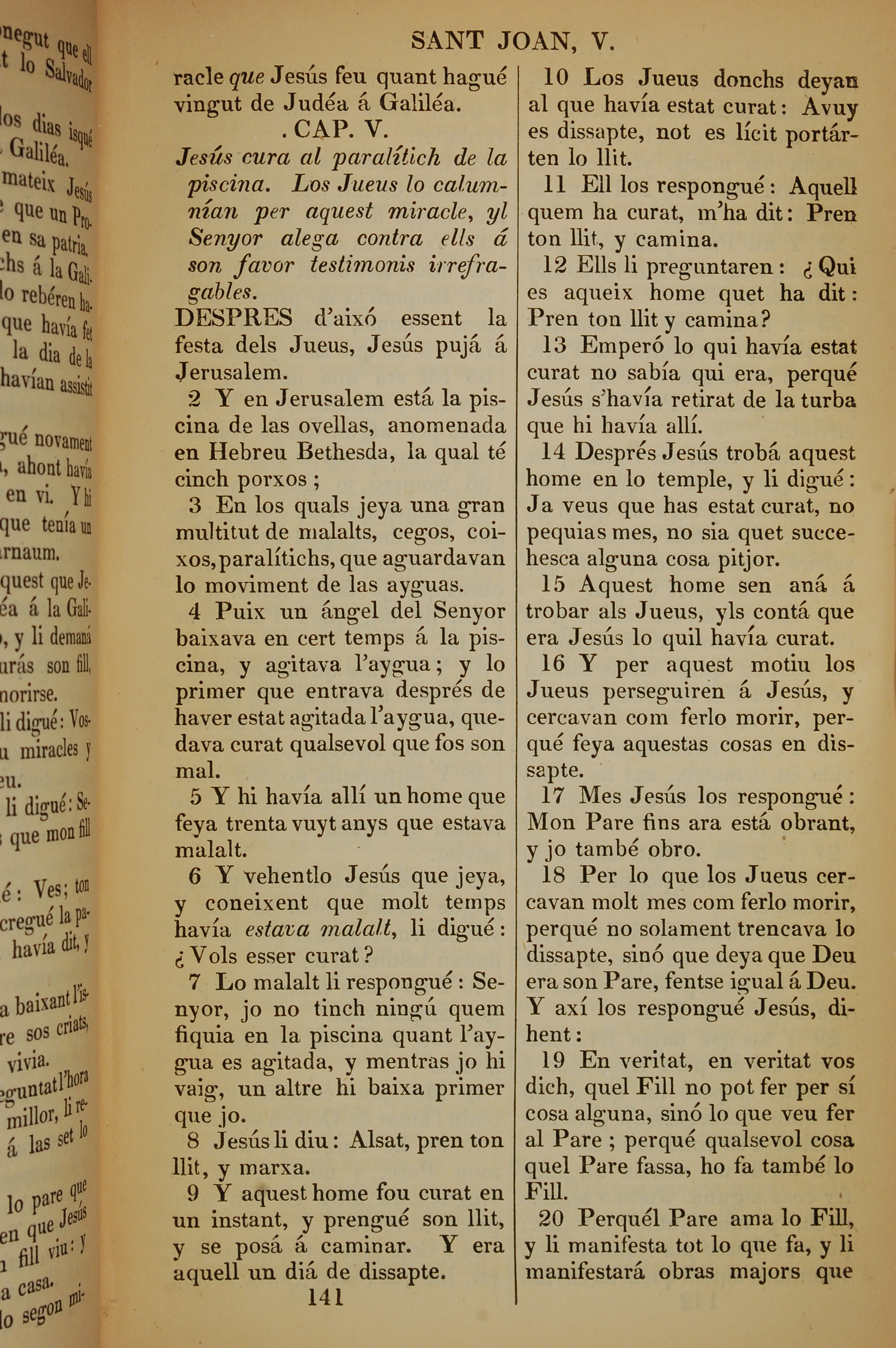 1835年加泰罗尼亚语新约全书 约翰福音 5 章 1 节到 5 章 20 节