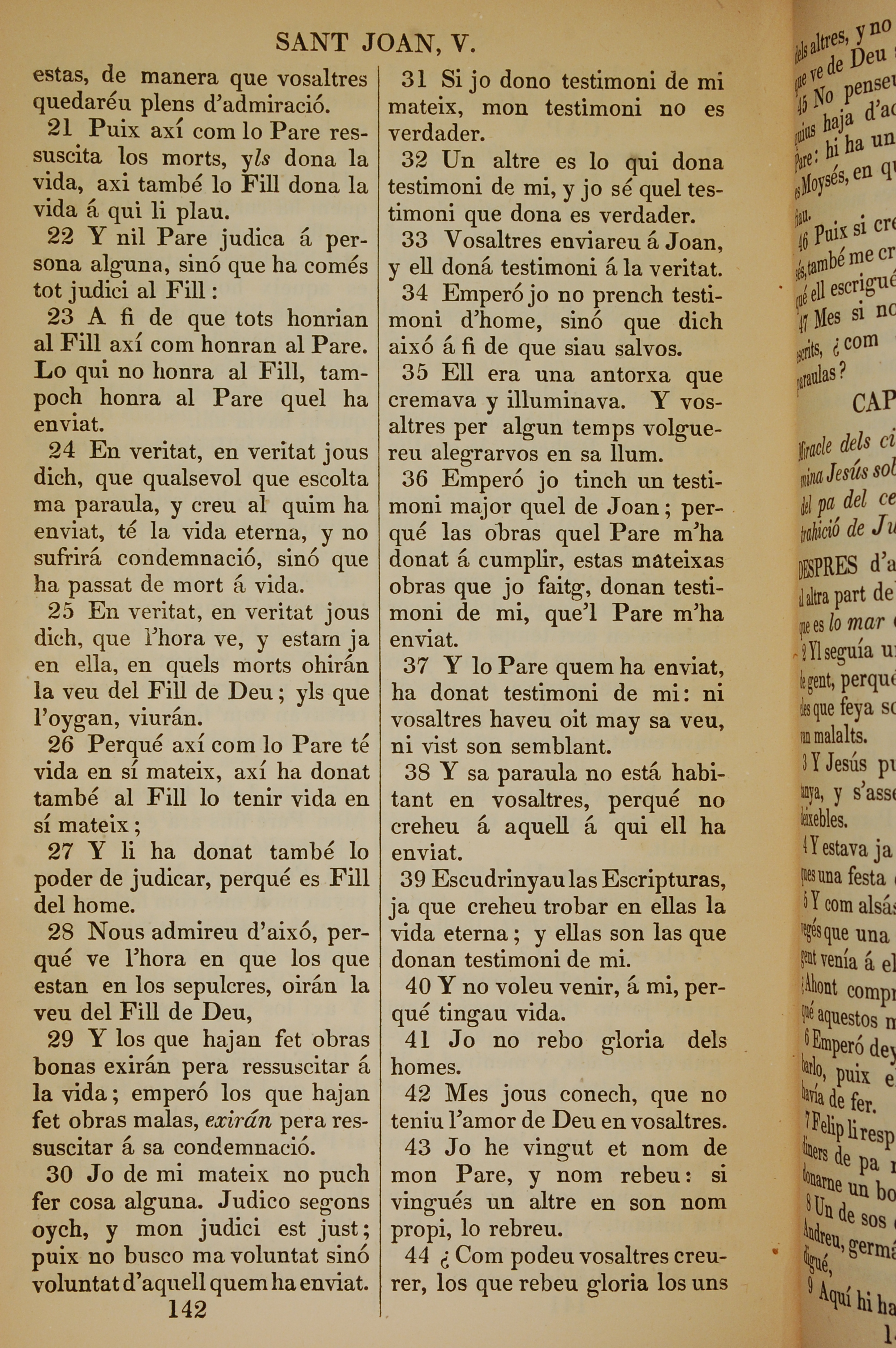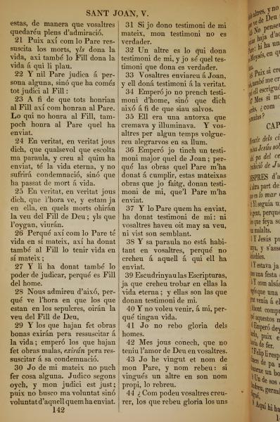 1835年加泰罗尼亚语新约全书 约翰福音 5 章 21 节到 5 章 44 节