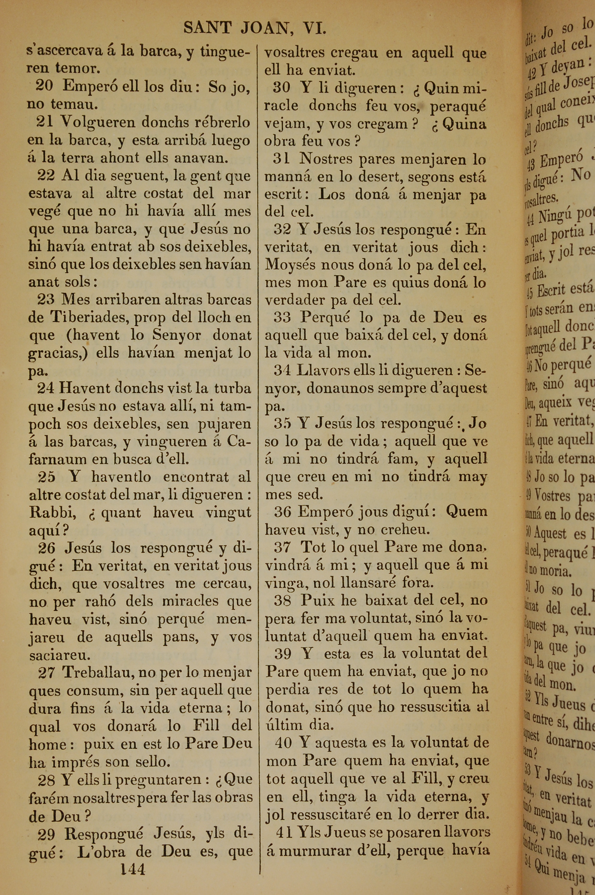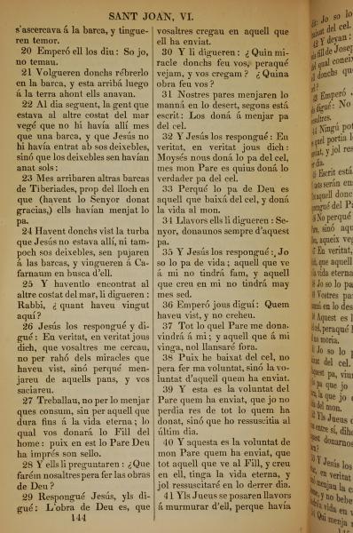 1835年加泰罗尼亚语新约全书 约翰福音 6 章 20 节到 6 章 41 节