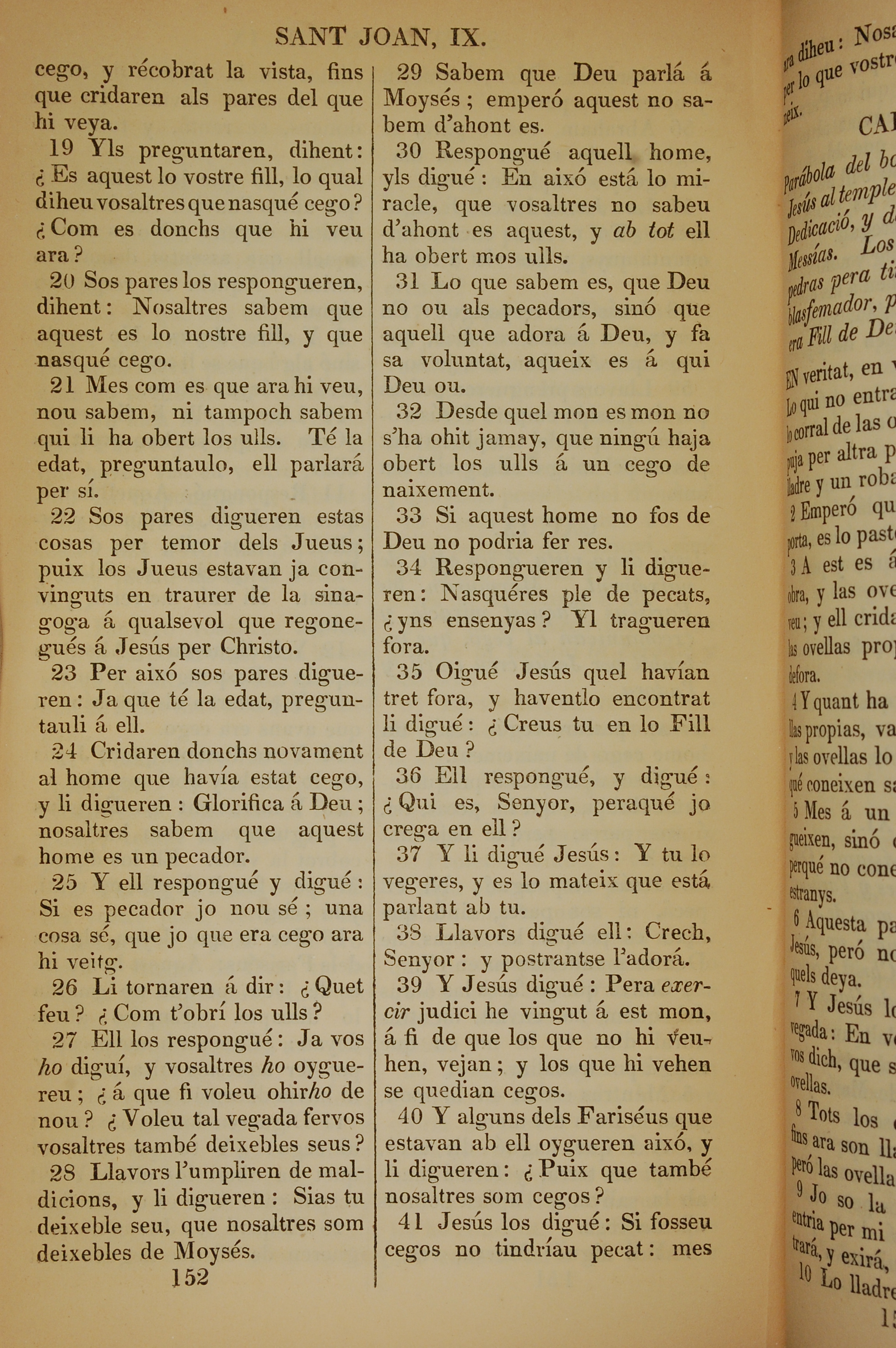1835年加泰罗尼亚语新约全书 约翰福音 9 章 19 节到 9 章 41 节
