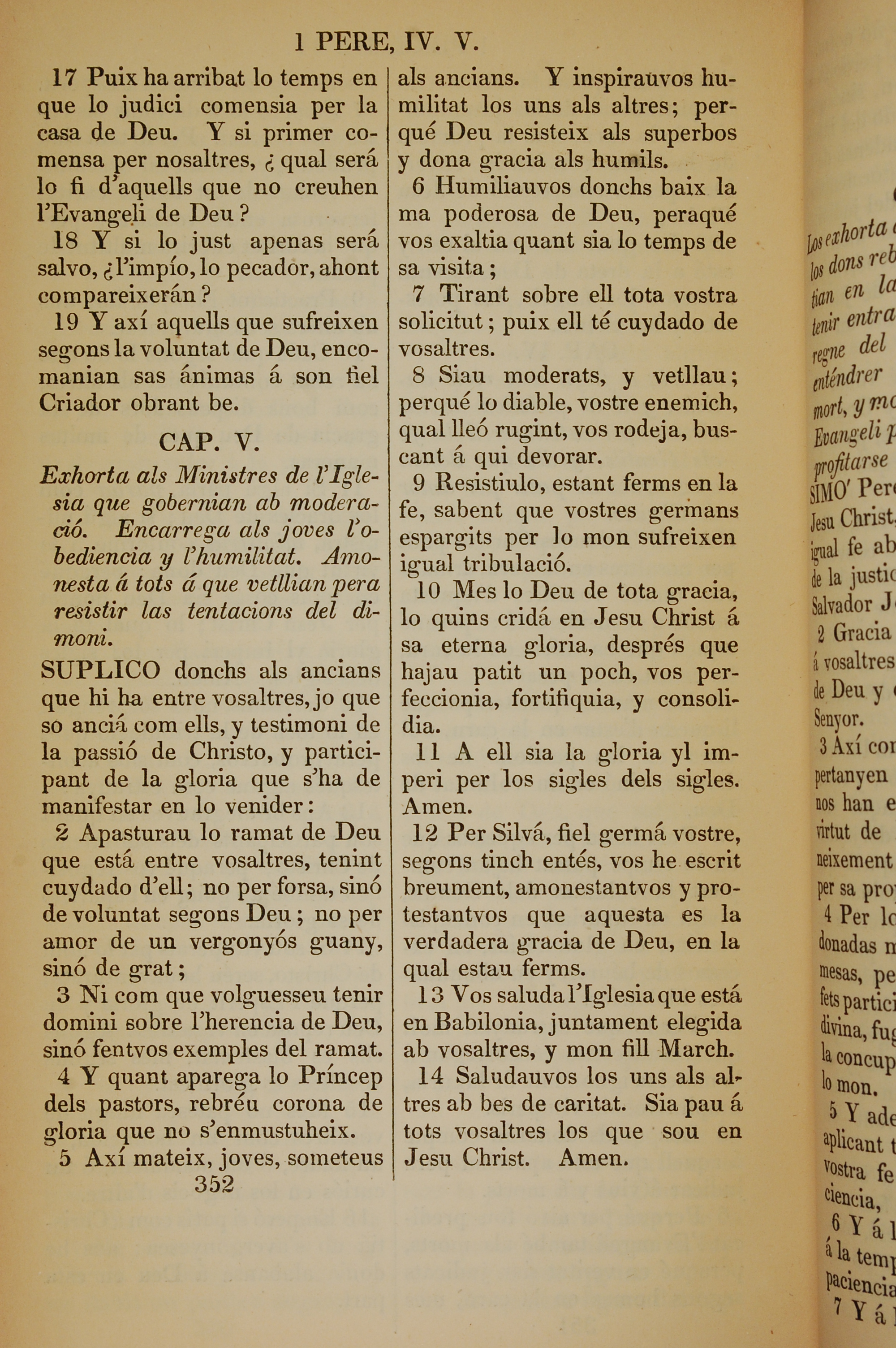 1835年加泰罗尼亚语新约全书 彼得前书 4 章 17 节到 5 章 14 节