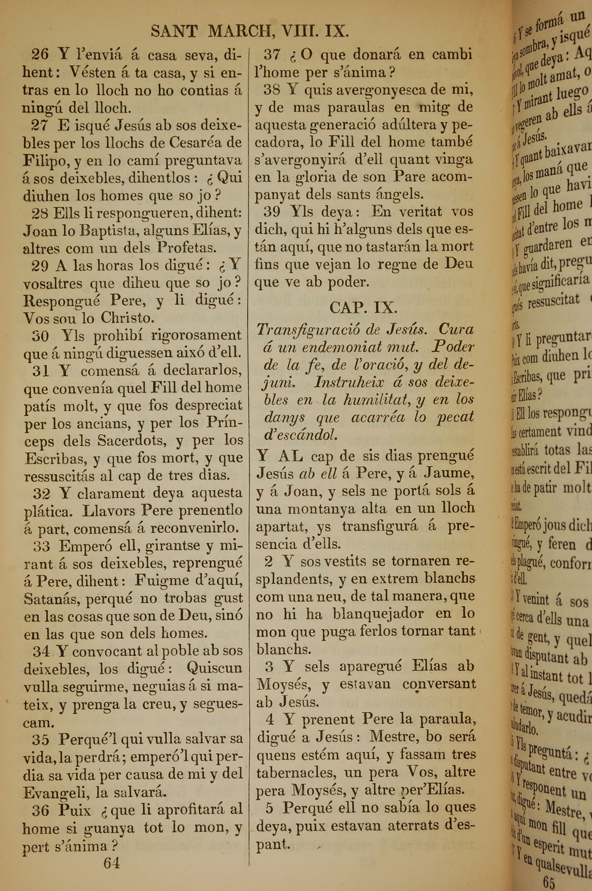 1835年加泰罗尼亚语新约全书 马可福音 8 章 26 节到 9 章 5 节