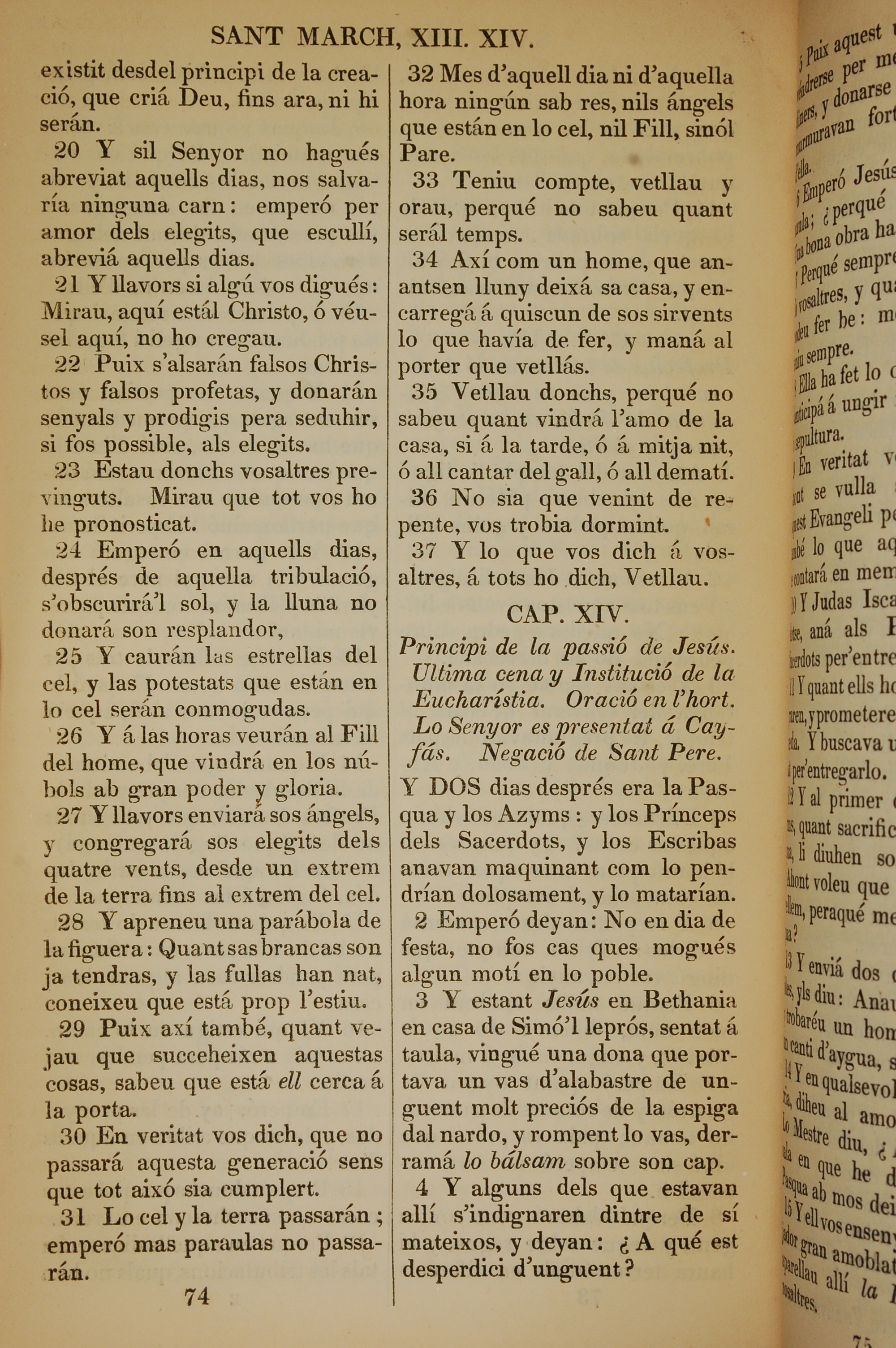 1835年加泰罗尼亚语新约全书 马可福音 13 章 20 节到 14 章 4 节