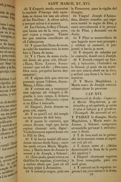 1835年加泰罗尼亚语新约全书 马可福音 15 章 31 节到 16 章 5 节