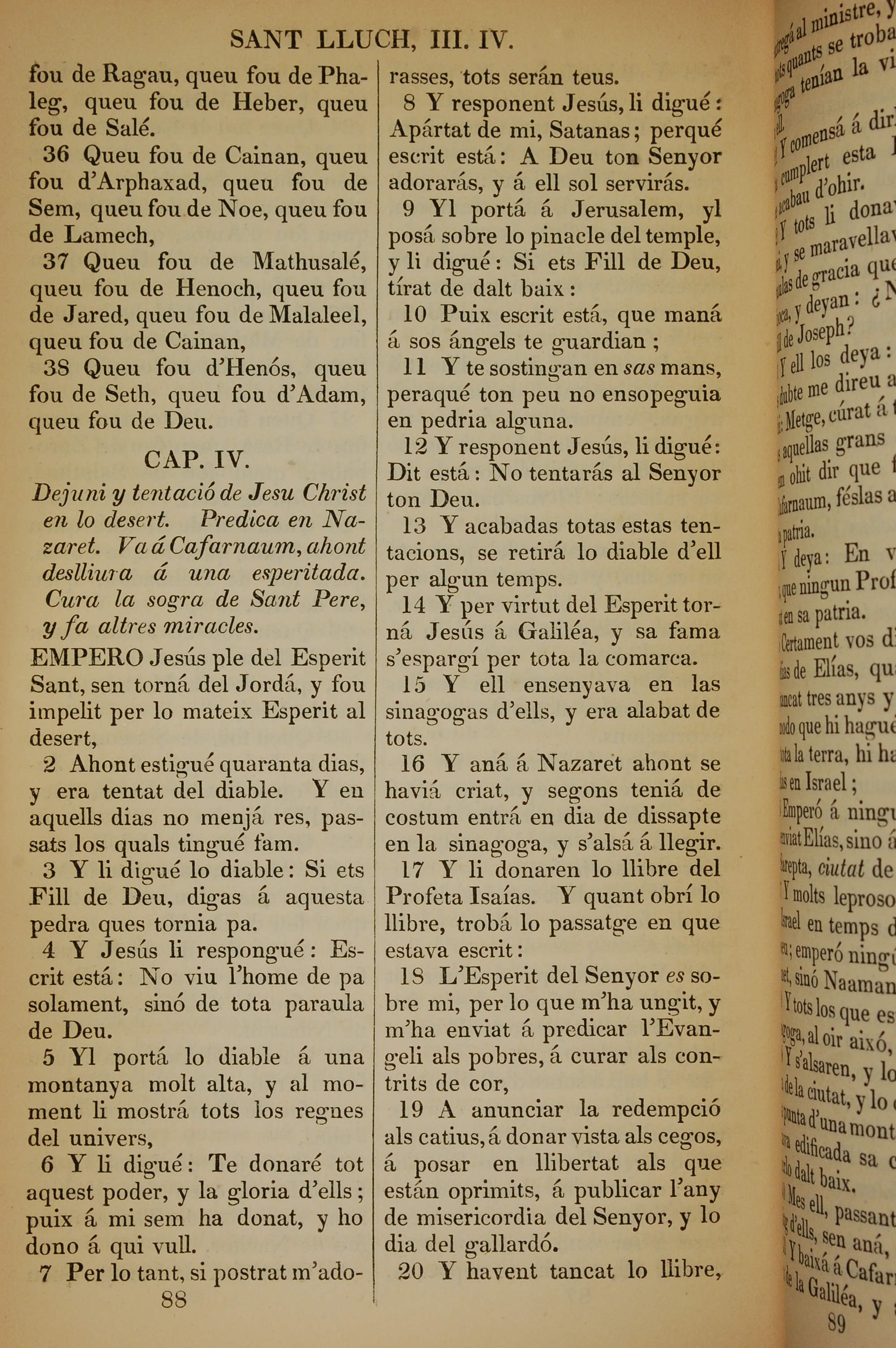1835年加泰罗尼亚语新约全书 路加福音 3 章 36 节到 4 章 20 节