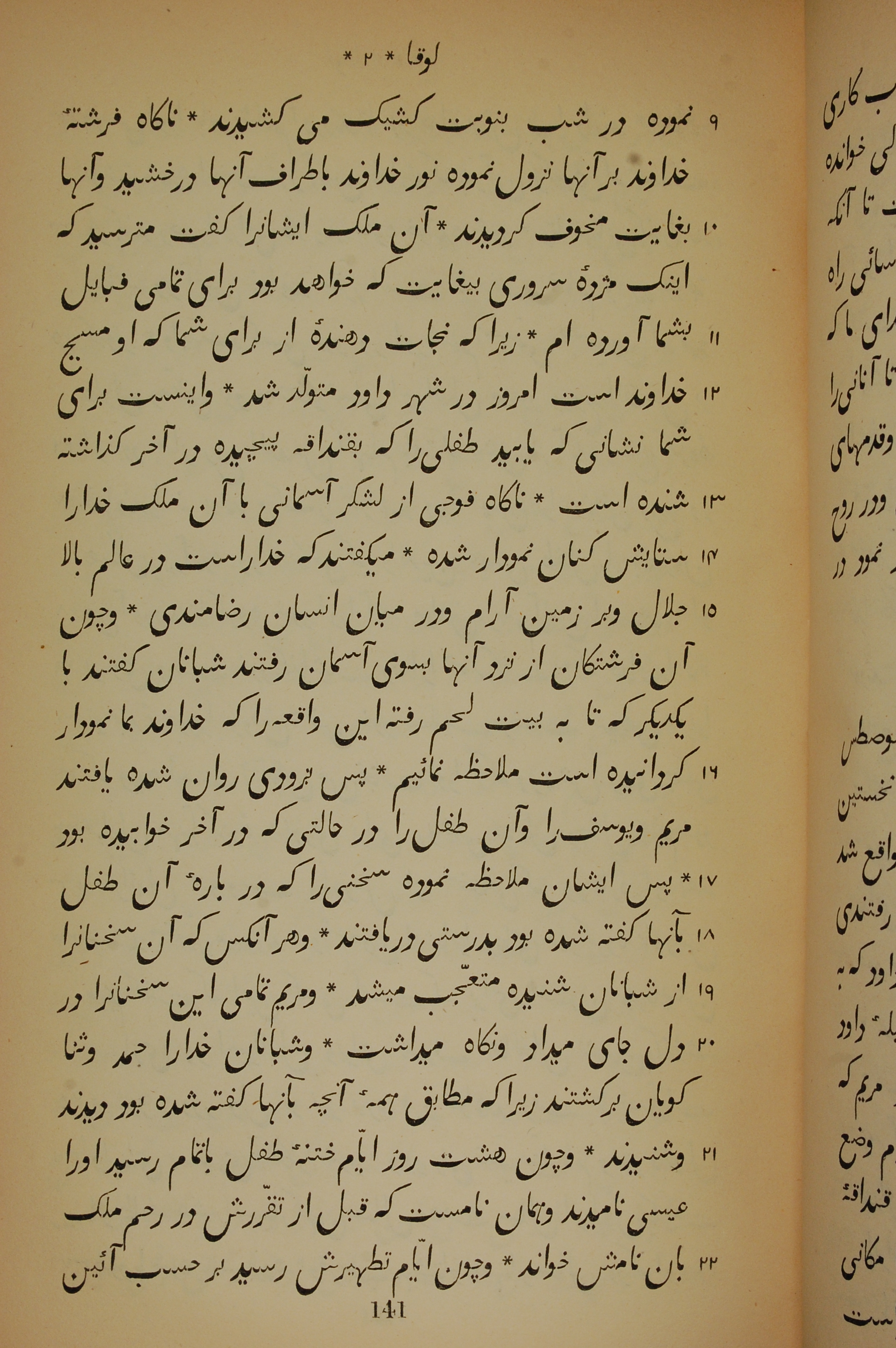1837年New Testament Translated From the Original Greek into Persian 路加福音 2 章 9 节到 2 章 22 节