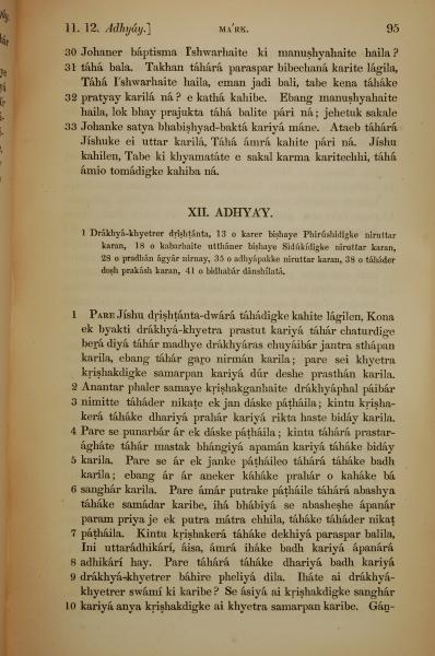 1839年孟加拉语新约全书 马可福音 11 章 30 节到 12 章 10 节
