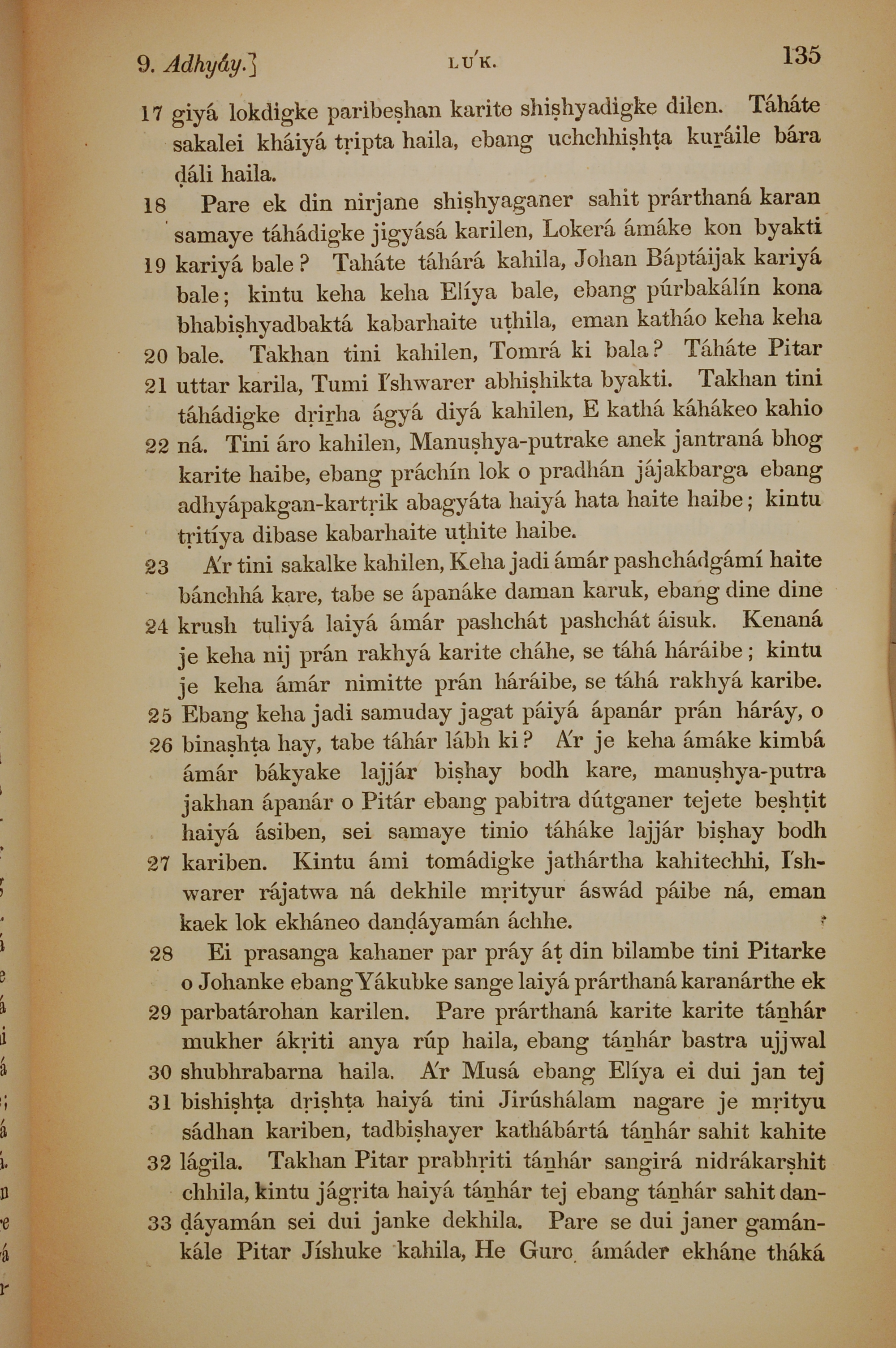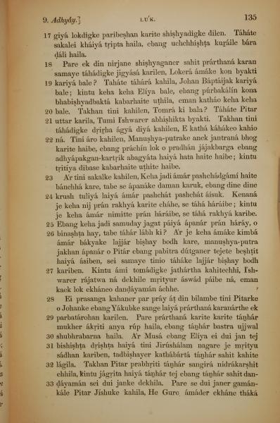 1839年孟加拉语新约全书 路加福音 9 章 17 节到 9 章 33 节