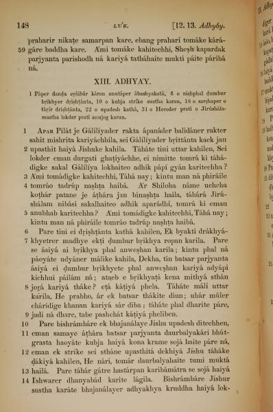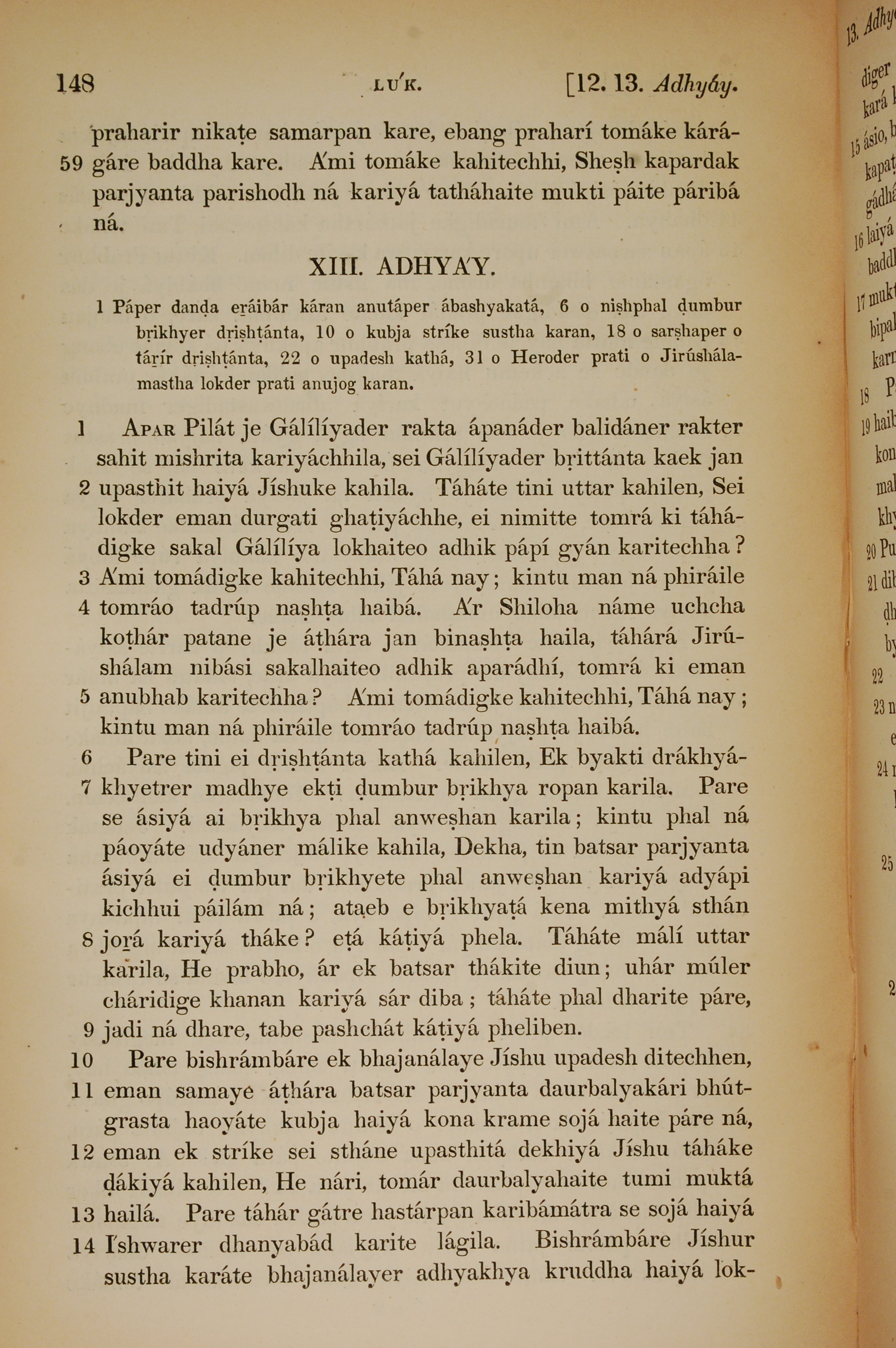 1839年孟加拉语新约全书 路加福音 12 章 59 节到 13 章 14 节