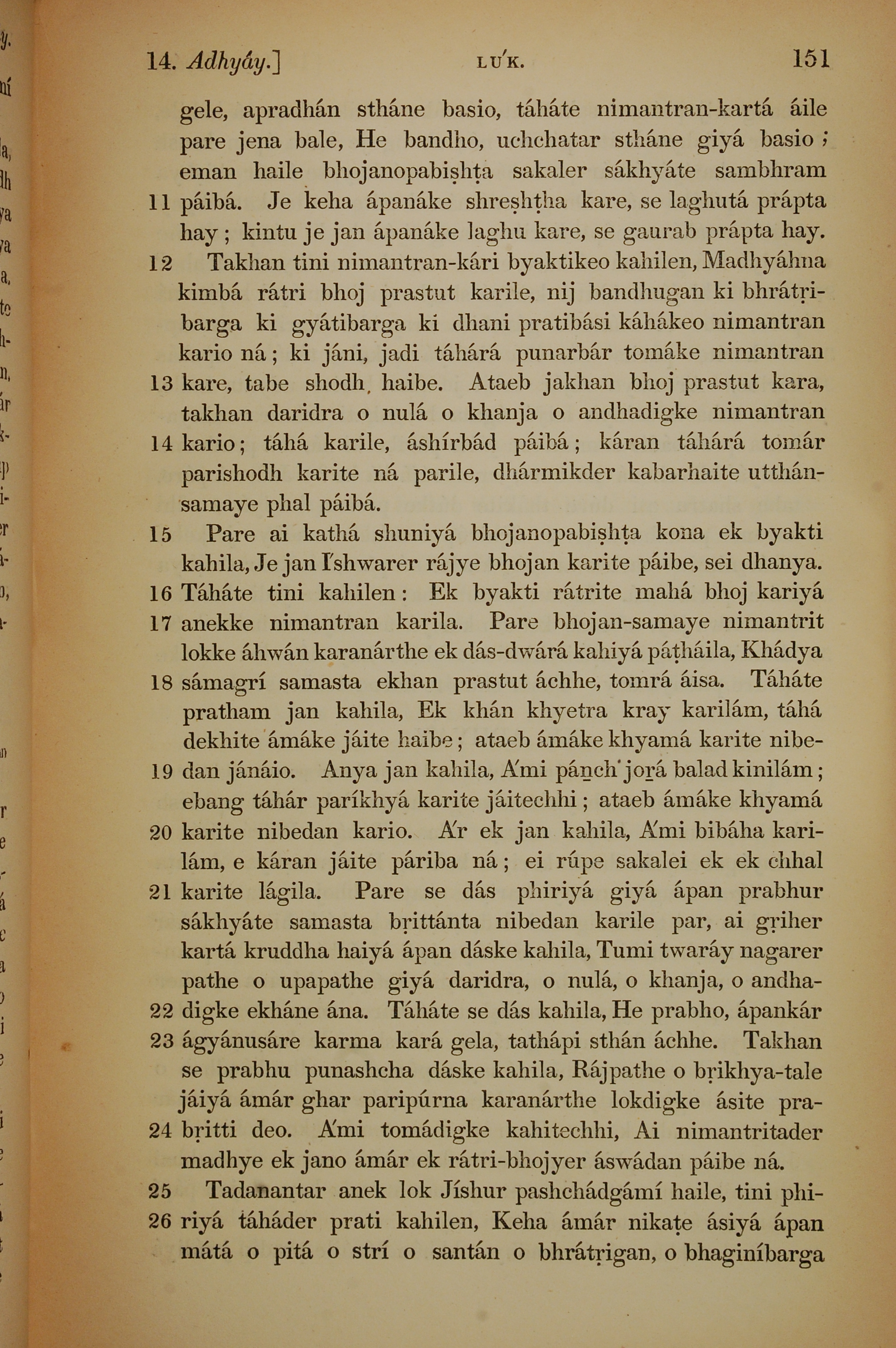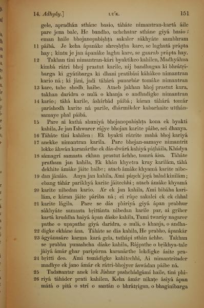 1839年孟加拉语新约全书 路加福音 14 章 11 节到 14 章 26 节