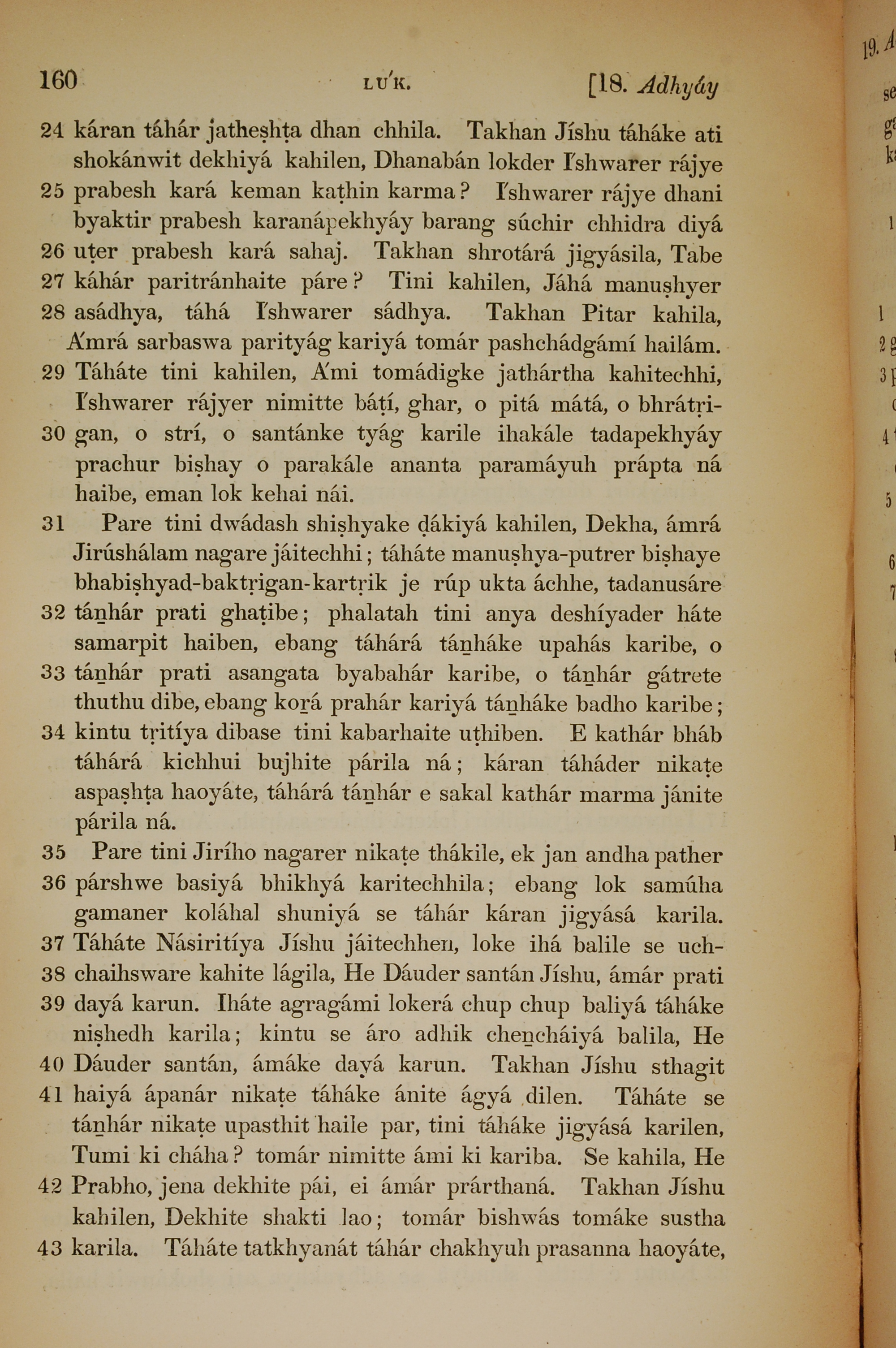1839年孟加拉语新约全书 路加福音 18 章 24 节到 18 章 43 节