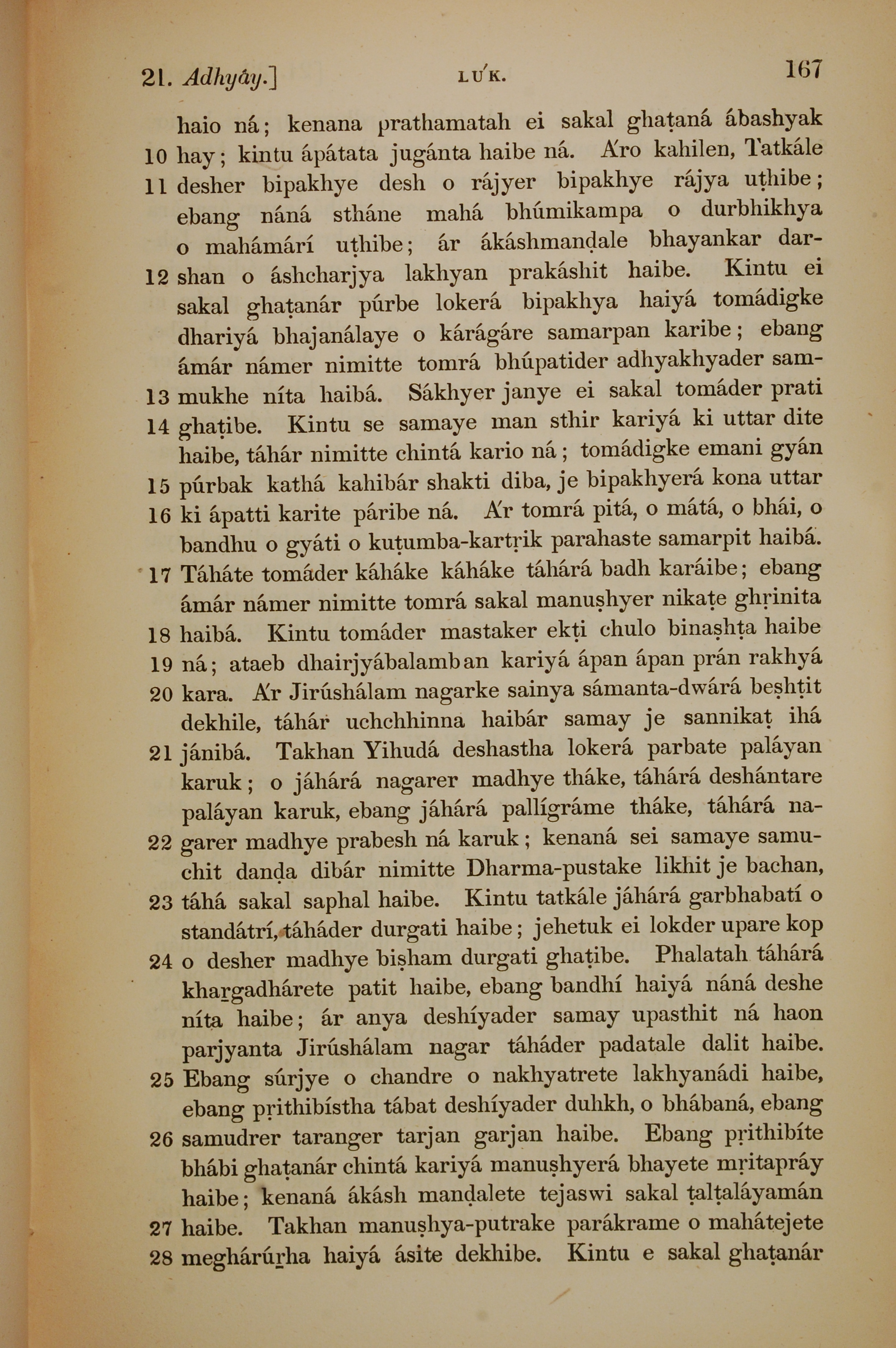 1839年孟加拉语新约全书 路加福音 21 章 10 节到 21 章 28 节