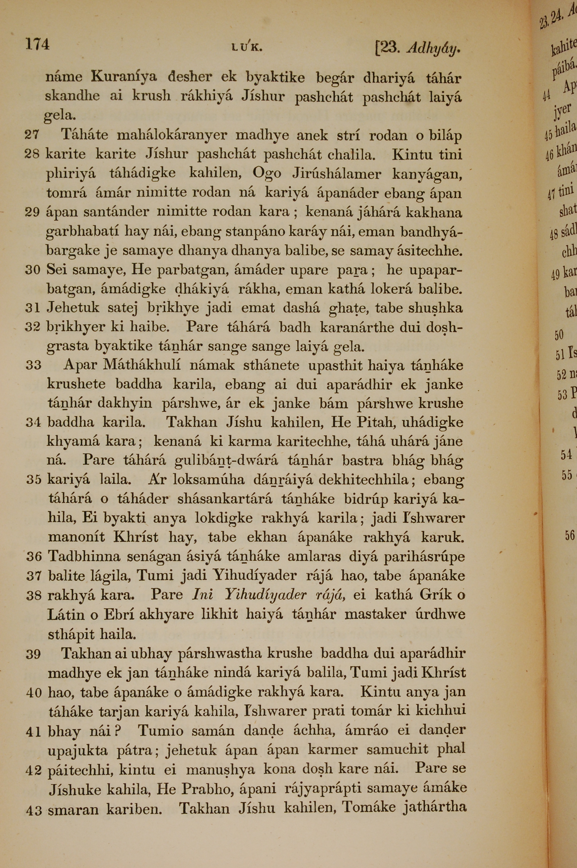 1839年孟加拉语新约全书 路加福音 23 章 27 节到 23 章 43 节