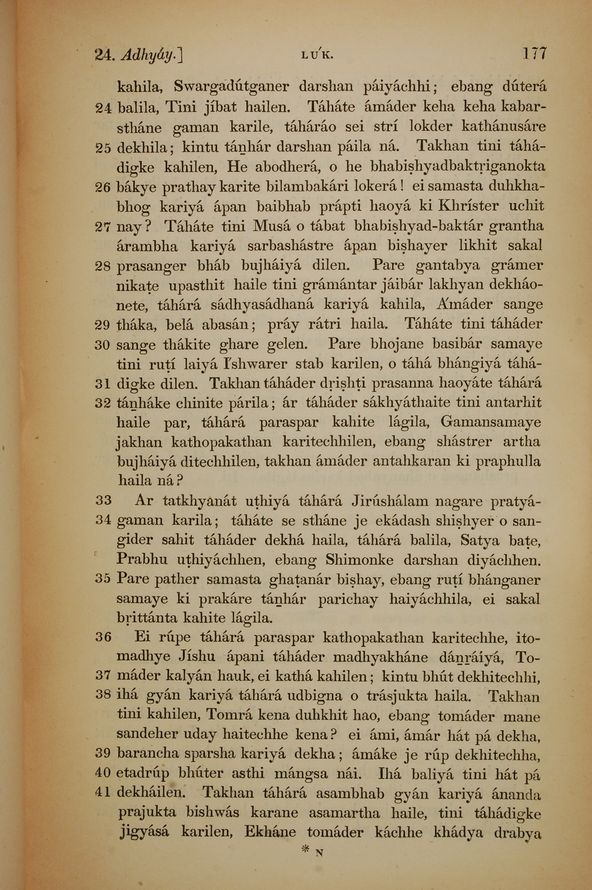 1839年孟加拉语新约全书 路加福音 24 章 24 节到 24 章 41 节