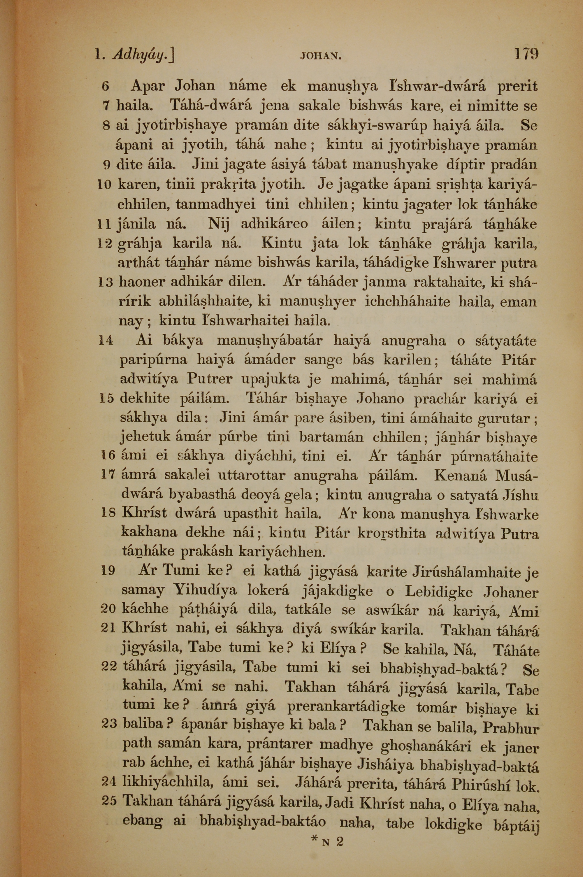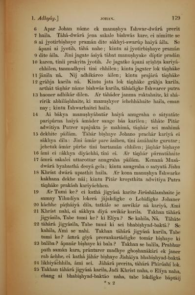 1839年孟加拉语新约全书 约翰福音 1 章 6 节到 1 章 25 节