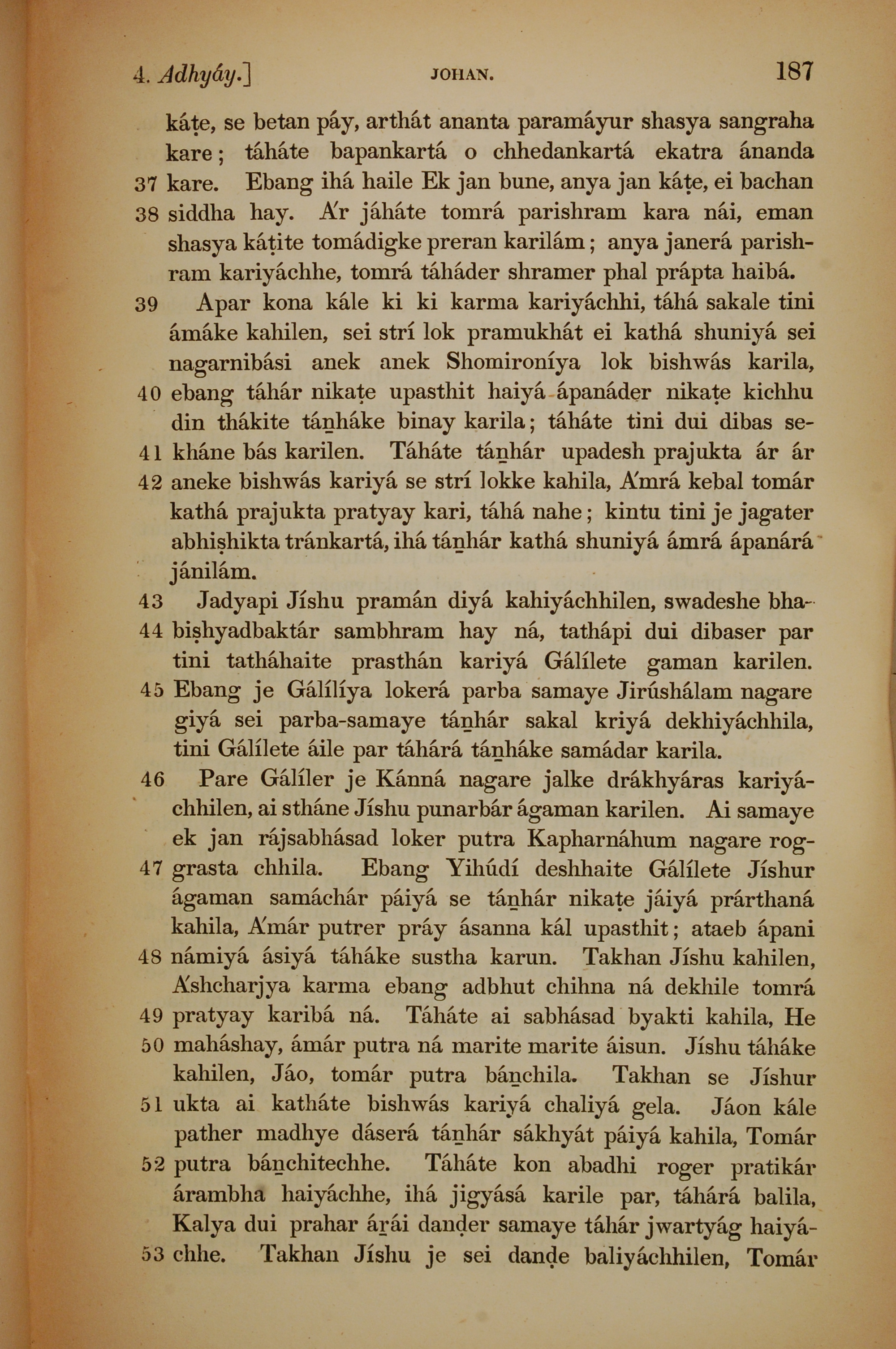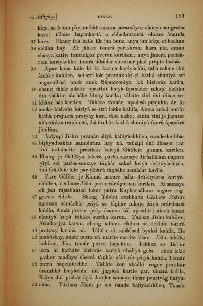 1839年孟加拉语新约全书 约翰福音 4 章 37 节到 4 章 53 节