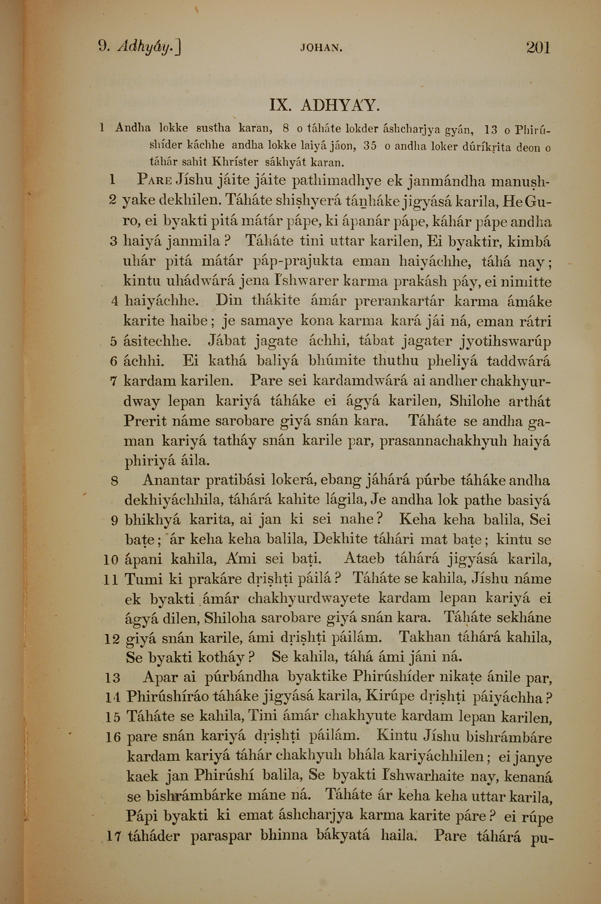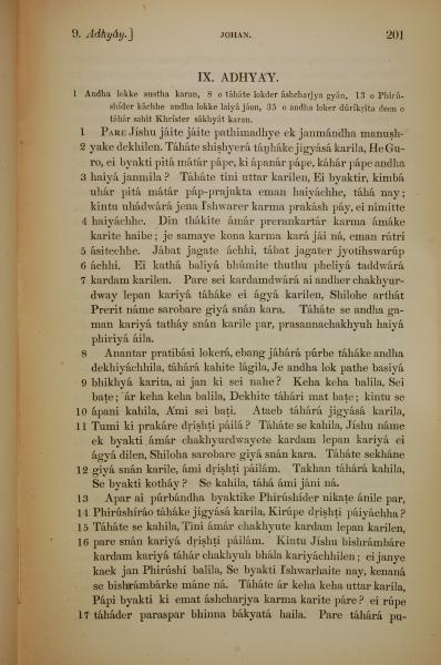 1839年孟加拉语新约全书 约翰福音 9 章 1 节到 9 章 17 节