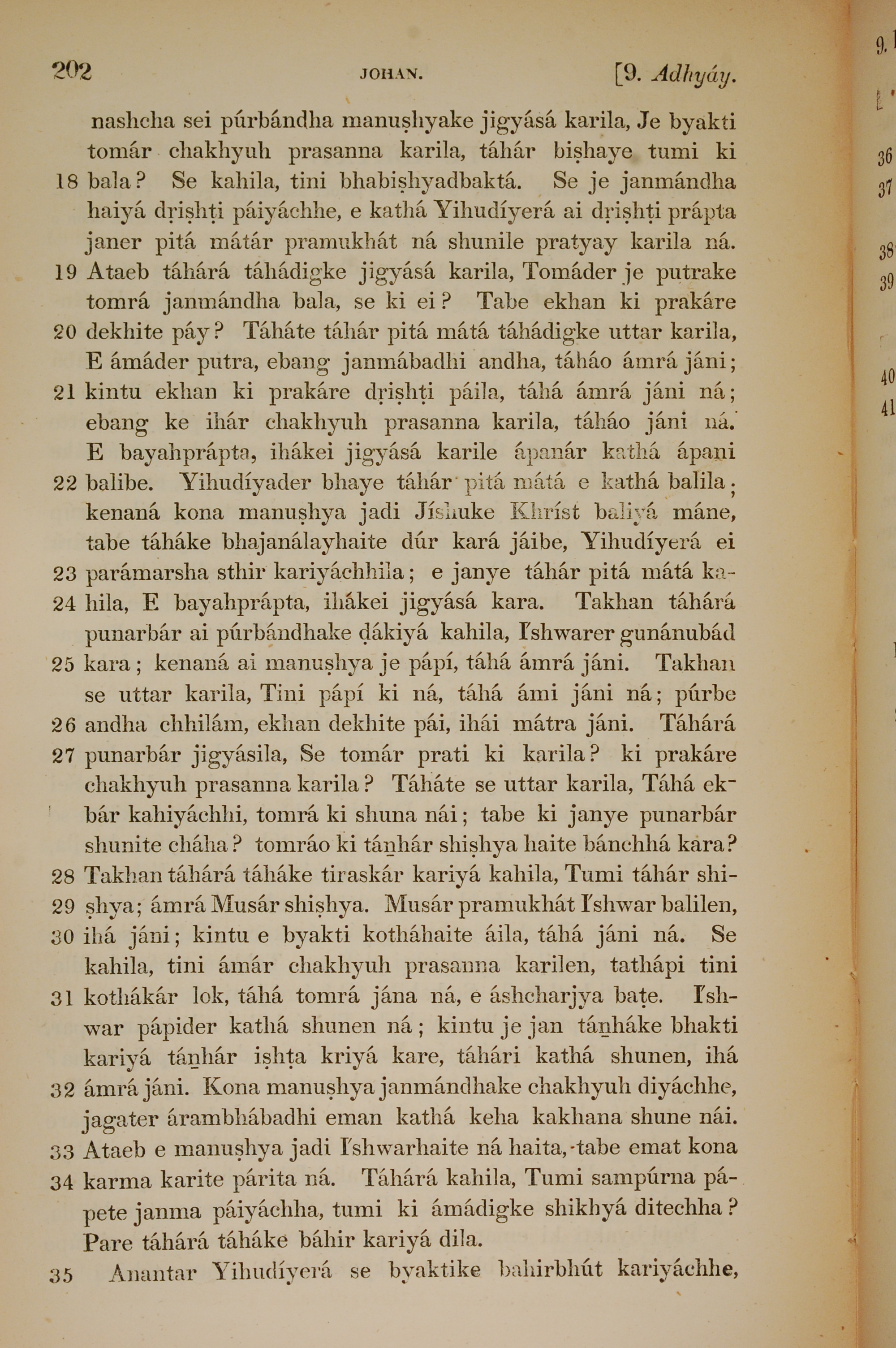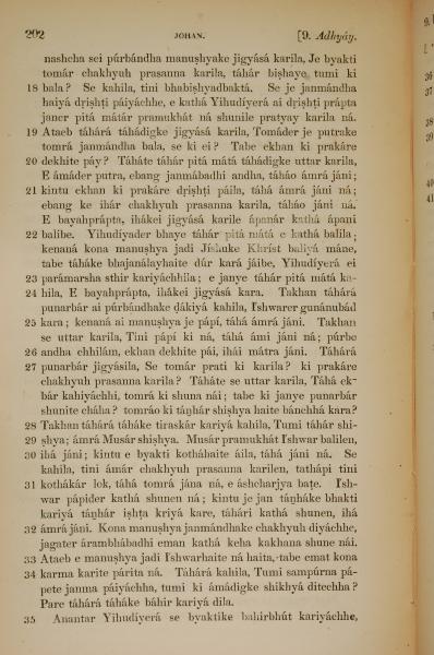 1839年孟加拉语新约全书 约翰福音 9 章 18 节到 9 章 35 节