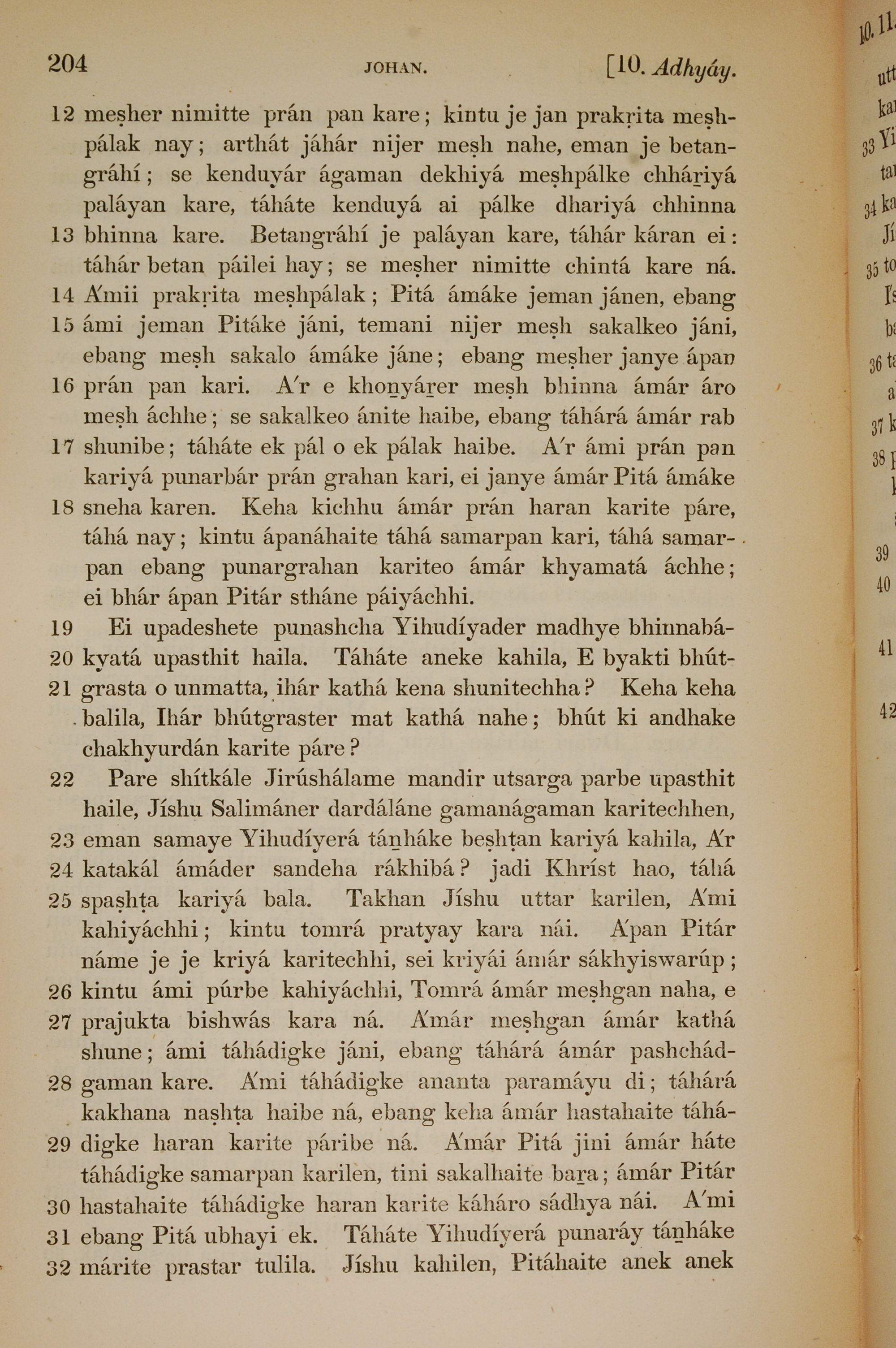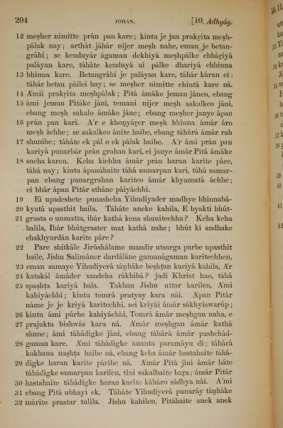 1839年孟加拉语新约全书 约翰福音 10 章 12 节到 10 章 32 节