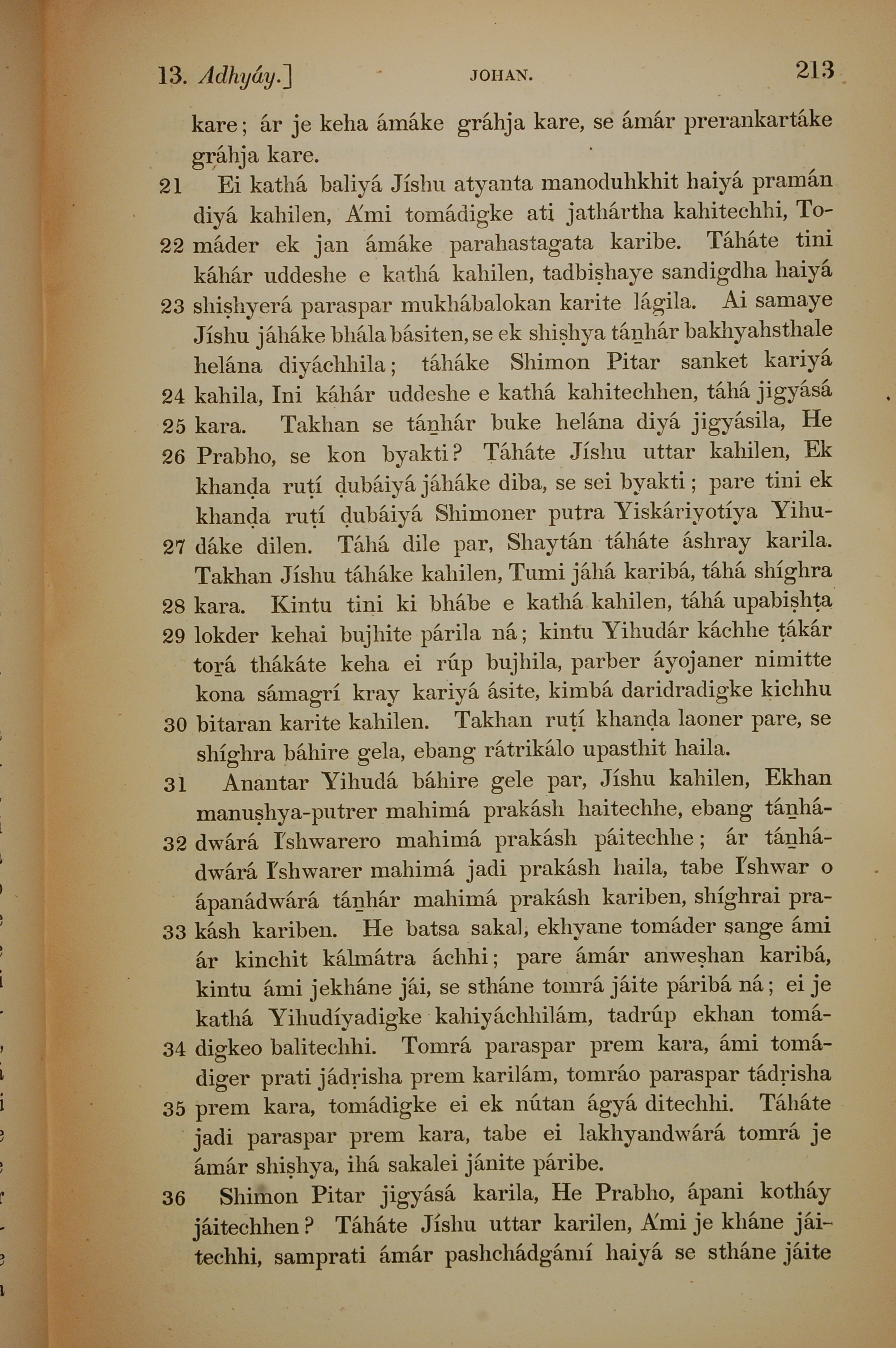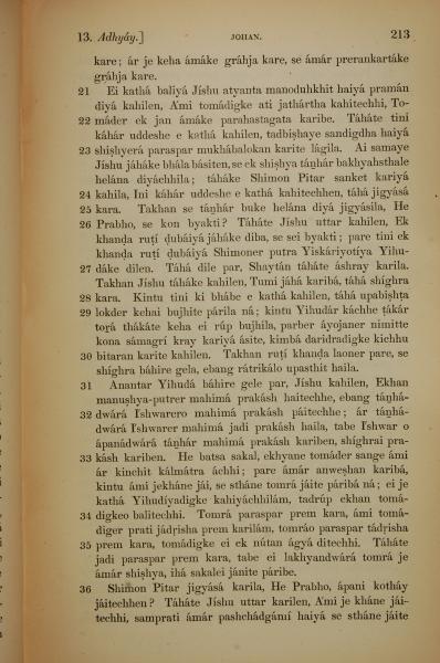 1839年孟加拉语新约全书 约翰福音 13 章 21 节到 13 章 36 节