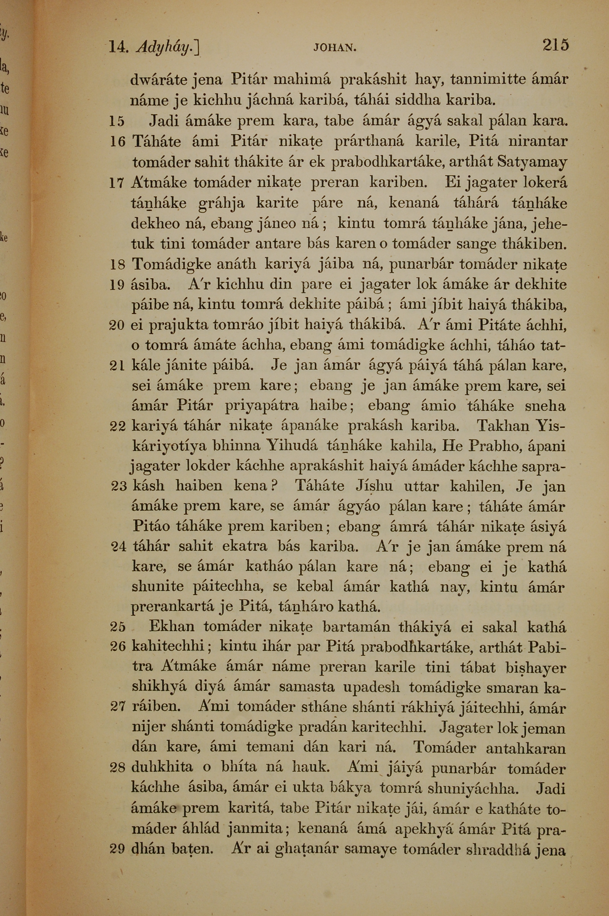 1839年孟加拉语新约全书 约翰福音 14 章 15 节到 14 章 29 节