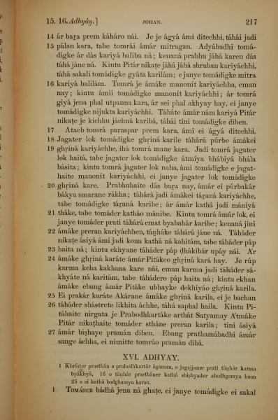 1839年孟加拉语新约全书 约翰福音 15 章 14 节到 16 章 1 节