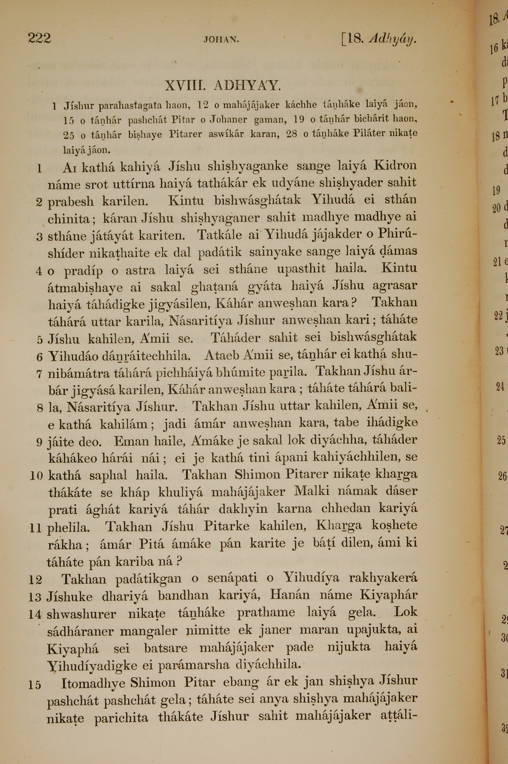 1839年孟加拉语新约全书 约翰福音 18 章 1 节到 18 章 15 节