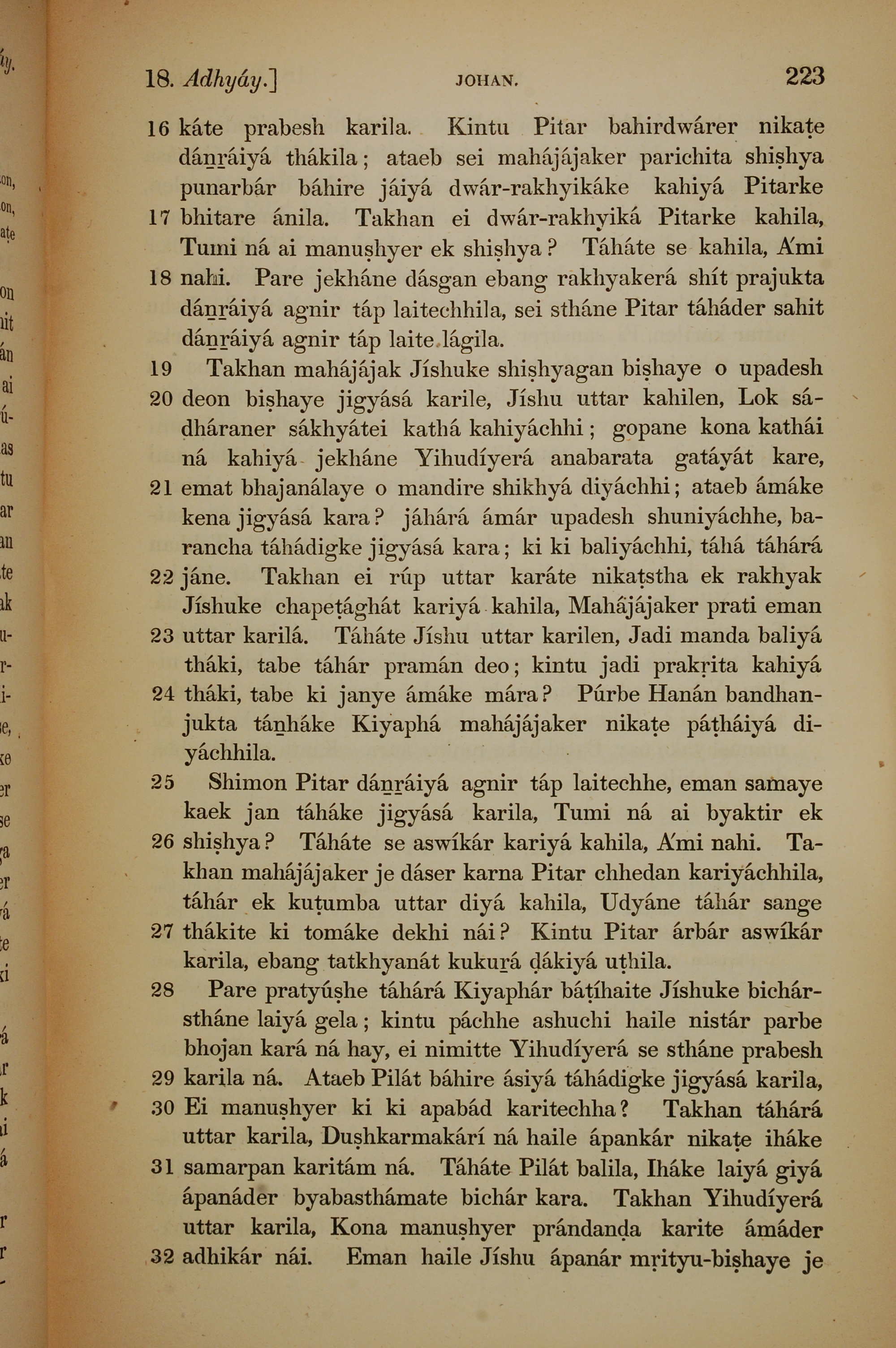 1839年孟加拉语新约全书 约翰福音 18 章 16 节到 18 章 32 节