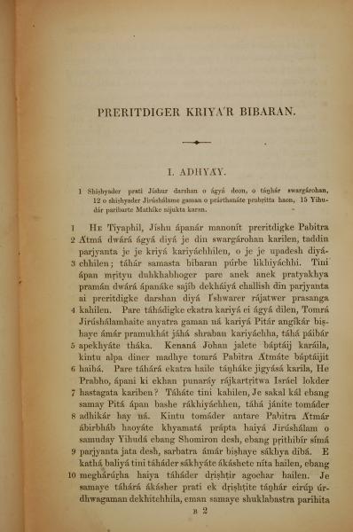 1839年孟加拉语新约全书 使徒行传 1 章 1 节到 1 章 10 节