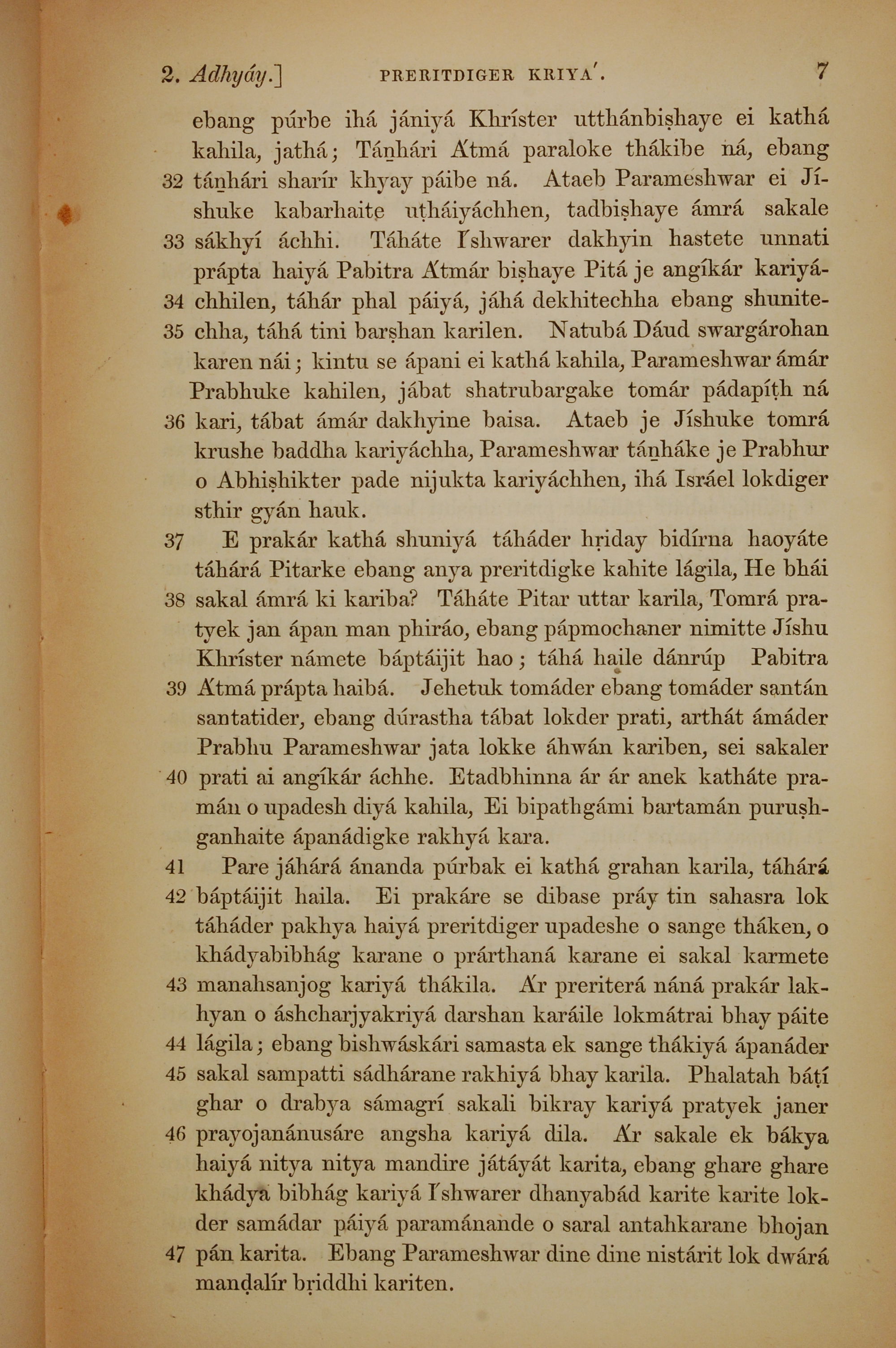 1839年孟加拉语新约全书 使徒行传 2 章 32 节到 2 章 47 节