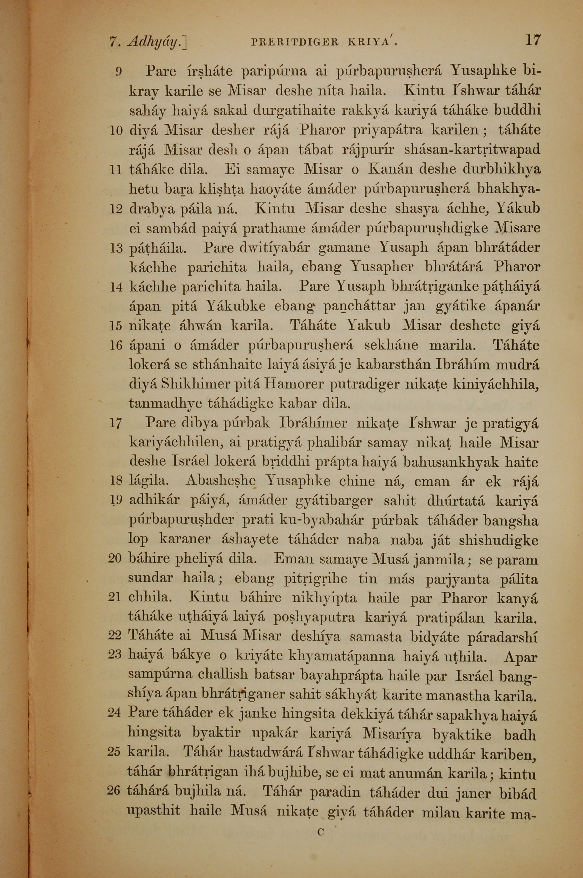 1839年孟加拉语新约全书 使徒行传 7 章 9 节到 7 章 26 节