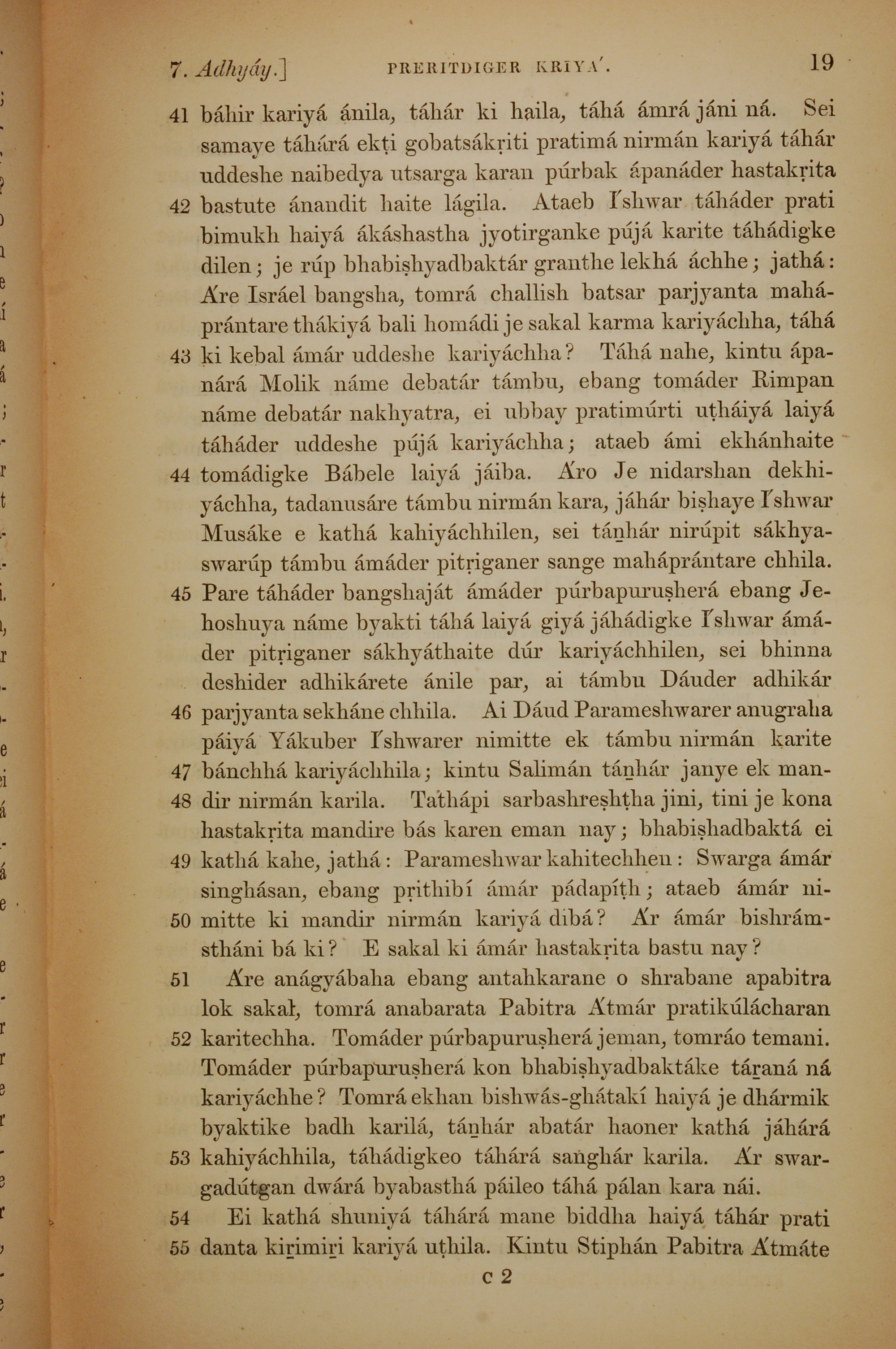 1839年孟加拉语新约全书 使徒行传 7 章 41 节到 7 章 55 节