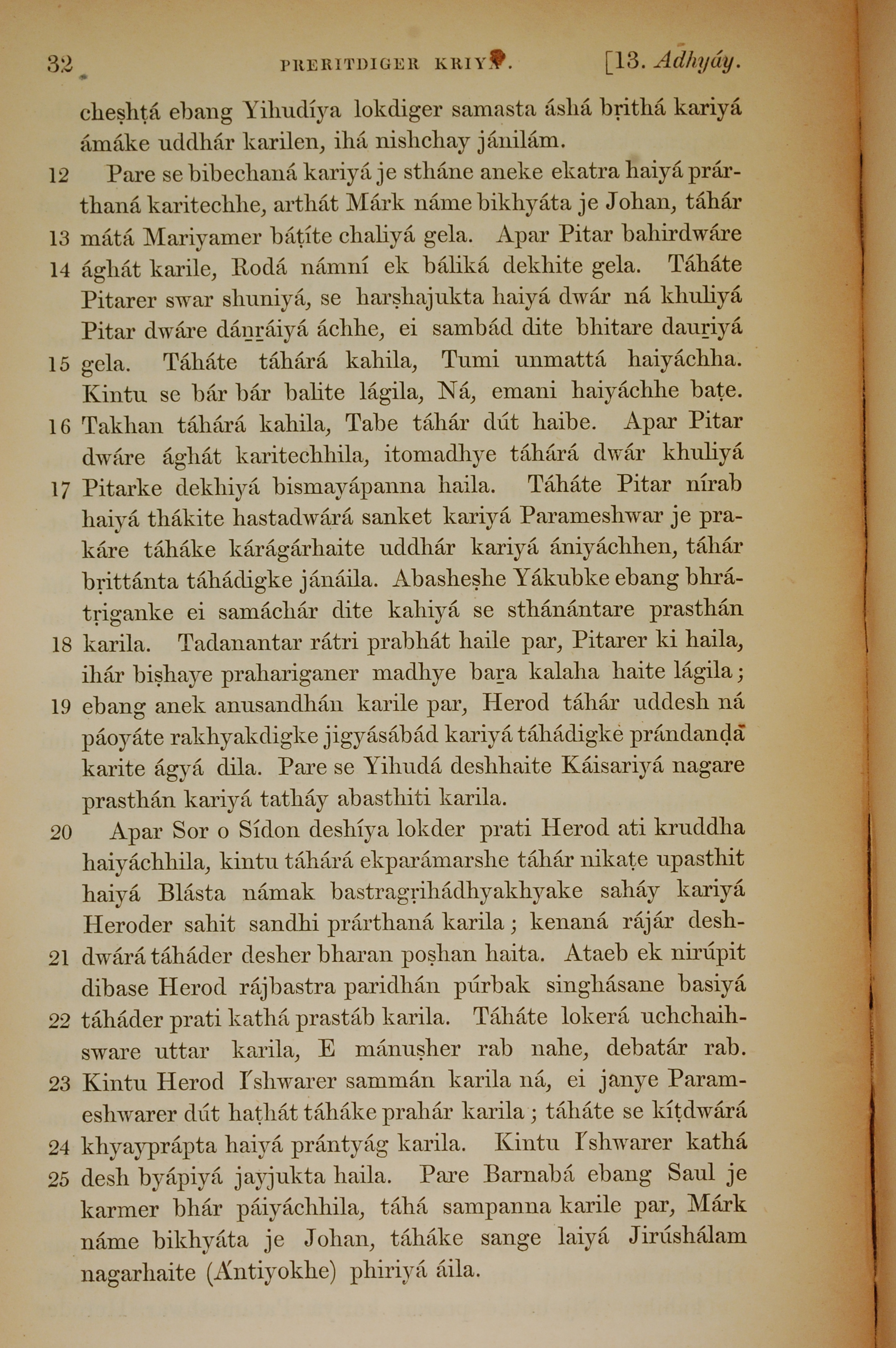 1839年孟加拉语新约全书 使徒行传 12 章 12 节到 12 章 25 节