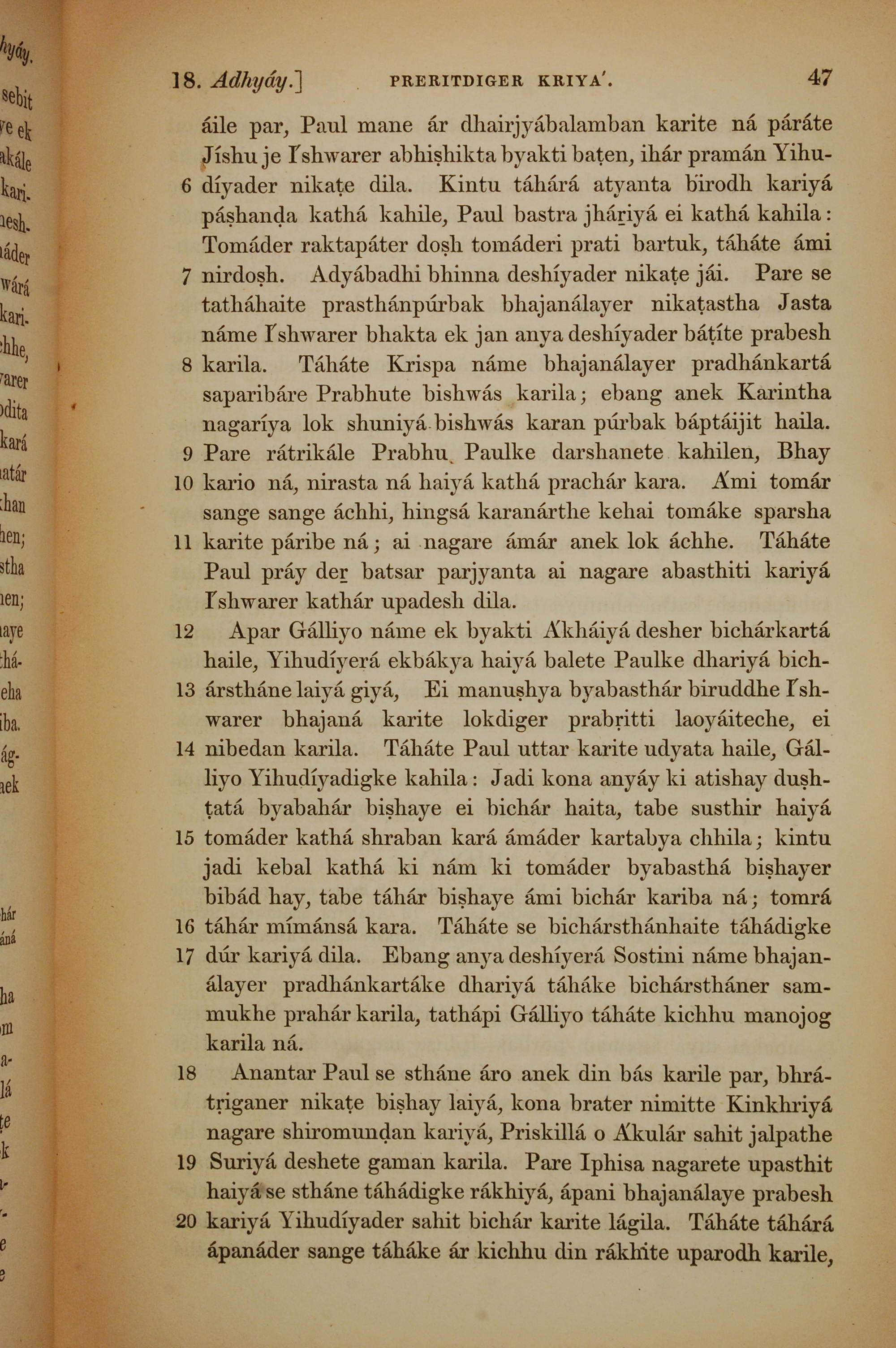 1839年孟加拉语新约全书 使徒行传 18 章 6 节到 18 章 20 节