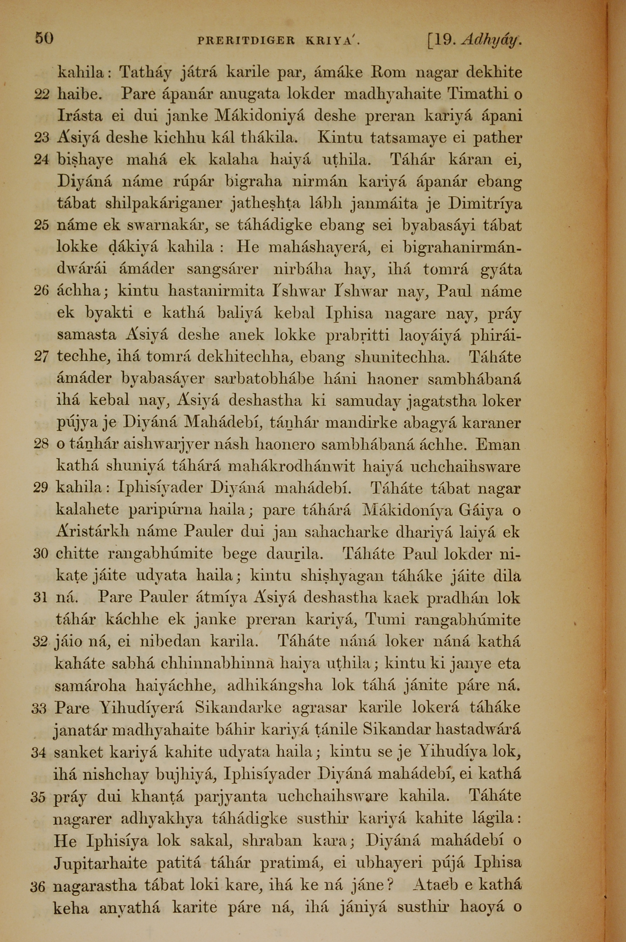 1839年孟加拉语新约全书 使徒行传 19 章 22 节到 19 章 36 节