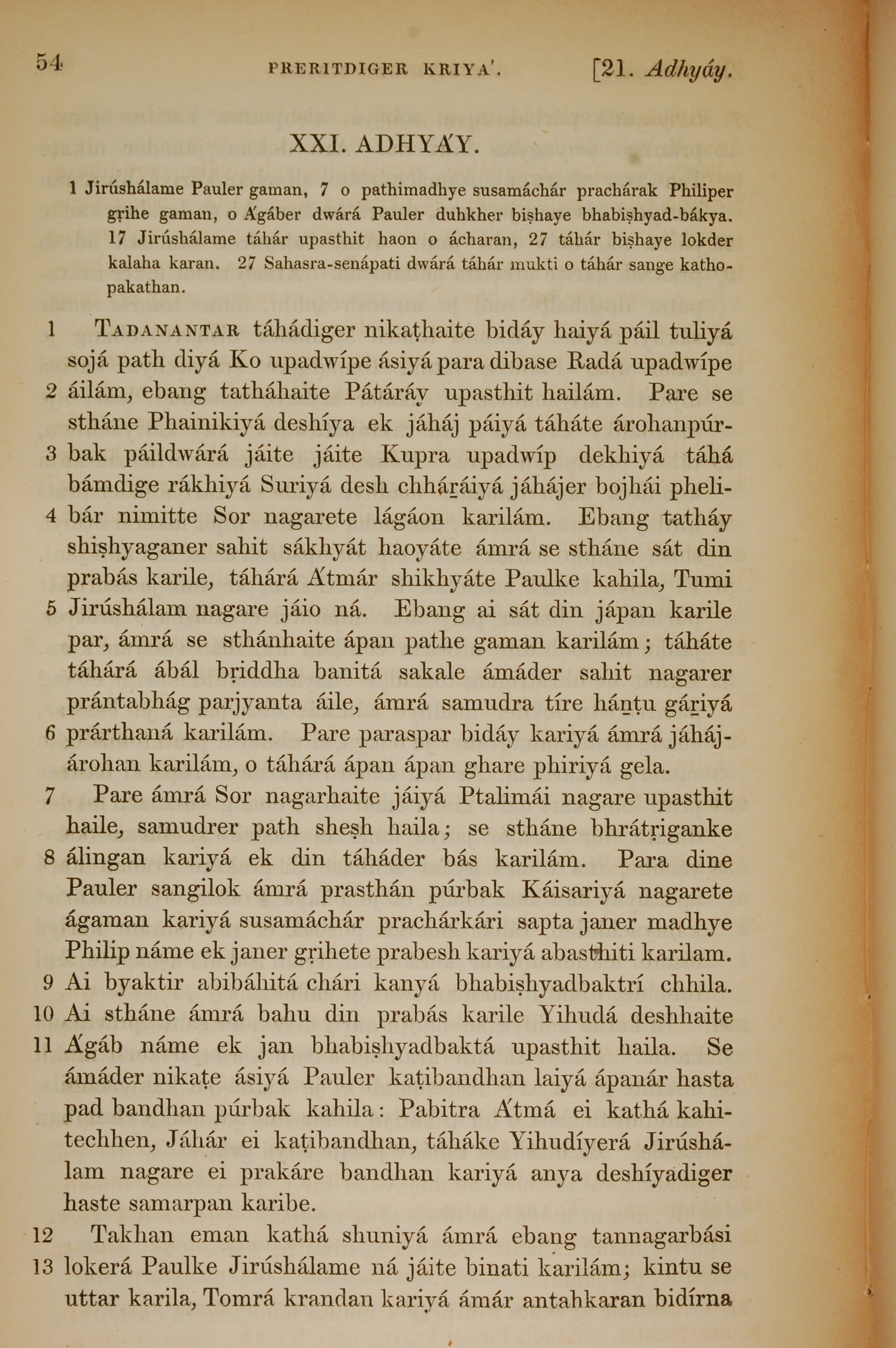 1839年孟加拉语新约全书 使徒行传 21 章 1 节到 21 章 13 节