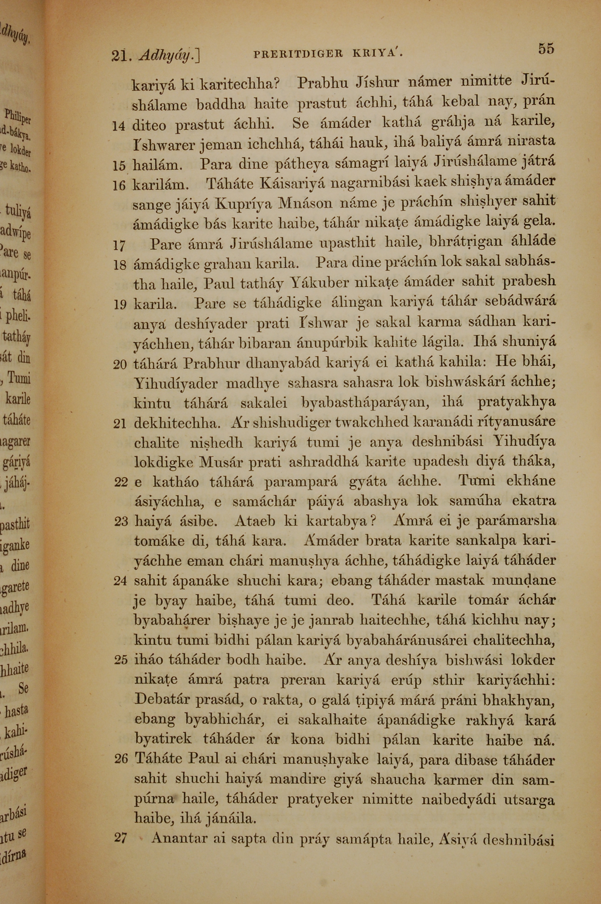 1839年孟加拉语新约全书 使徒行传 21 章 14 节到 21 章 27 节