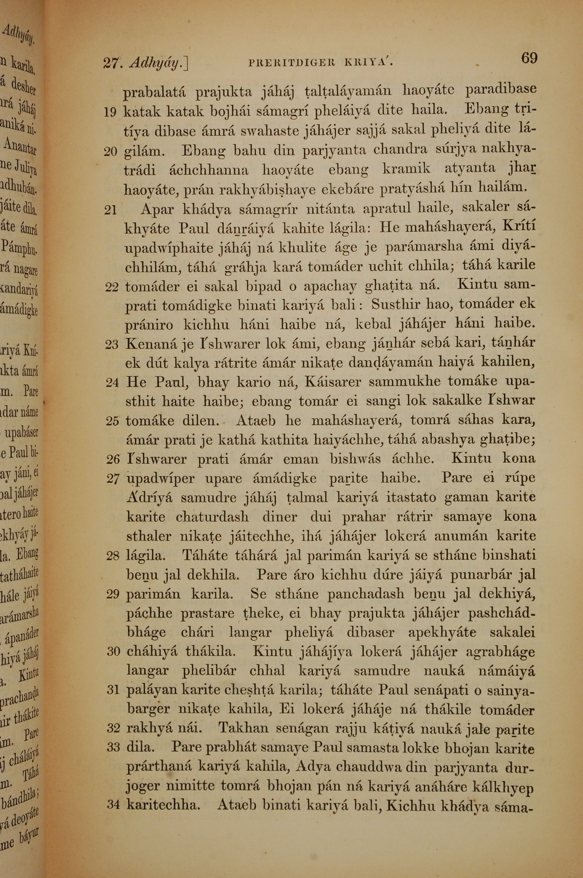 1839年孟加拉语新约全书 使徒行传 27 章 19 节到 27 章 34 节