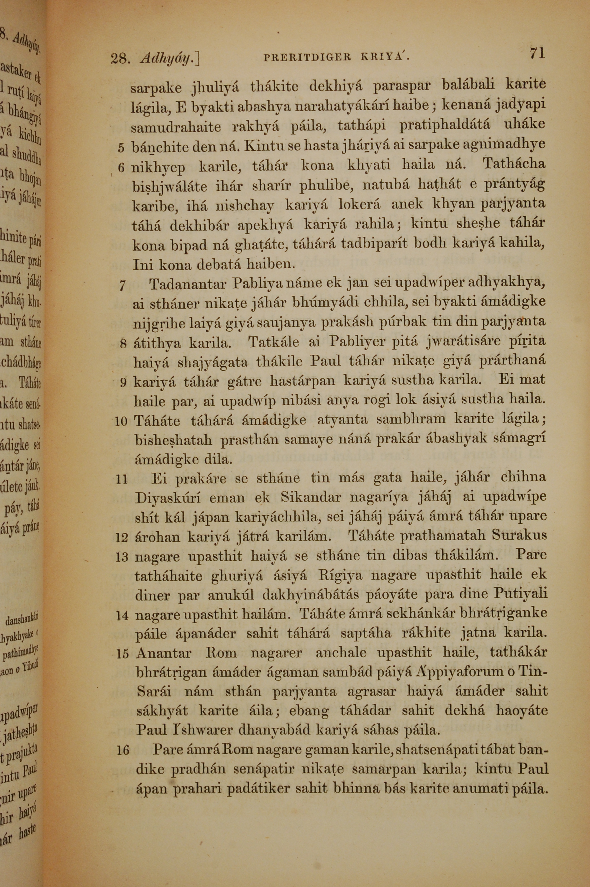 1839年孟加拉语新约全书 使徒行传 28 章 5 节到 28 章 16 节