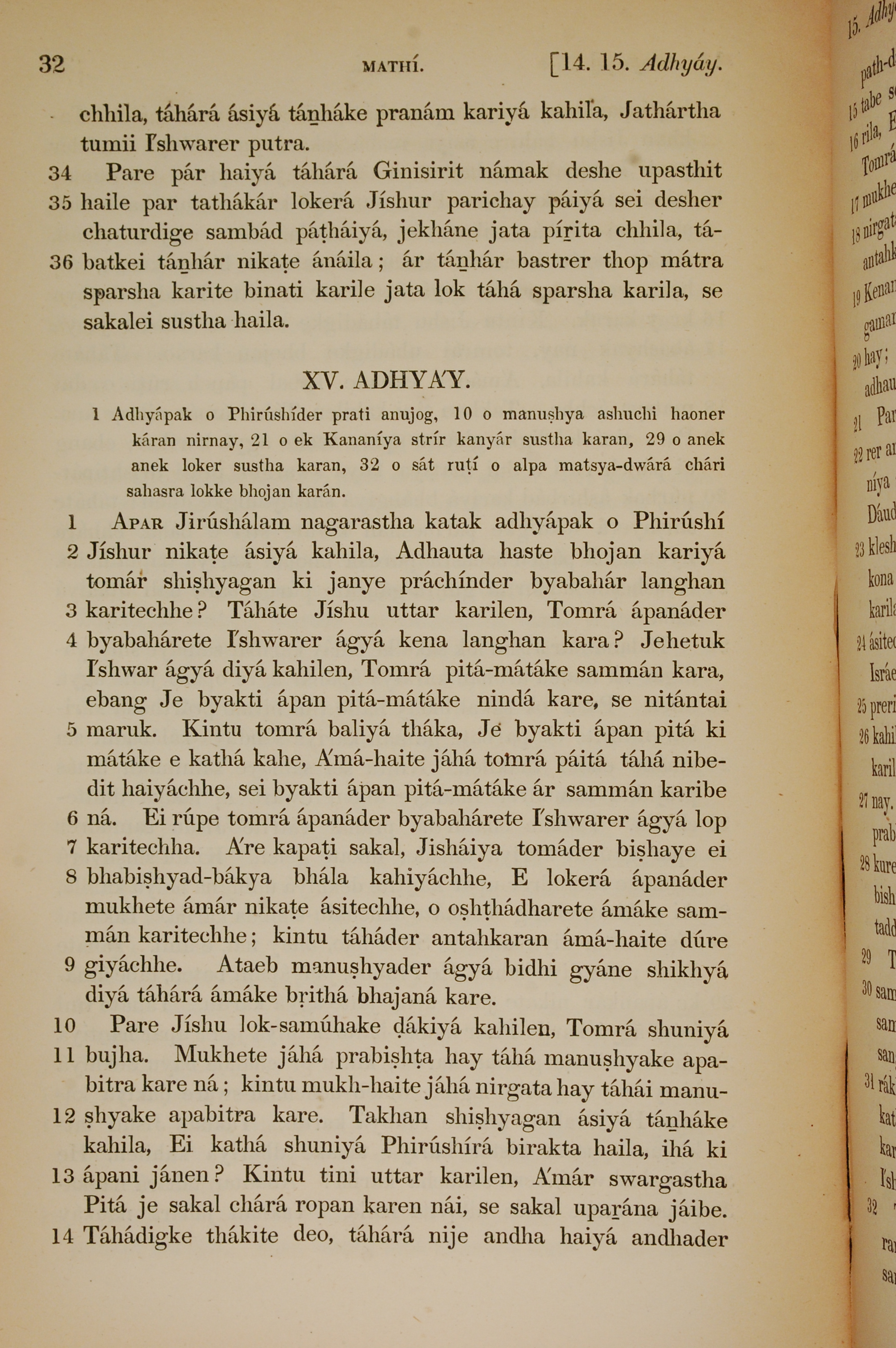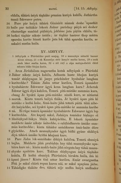 1839年孟加拉语新约全书 马太福音 14 章 34 节到 15 章 14 节