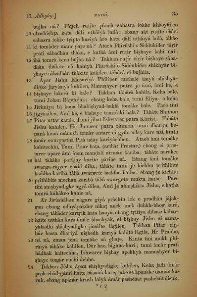 1839年孟加拉语新约全书 马太福音 16 章 10 节到 16 章 24 节
