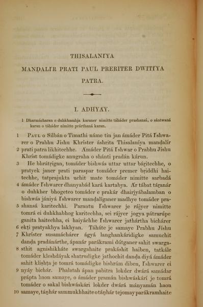 1839年孟加拉语新约全书 帖撒罗尼迦后书 1 章 1 节到 1 章 10 节