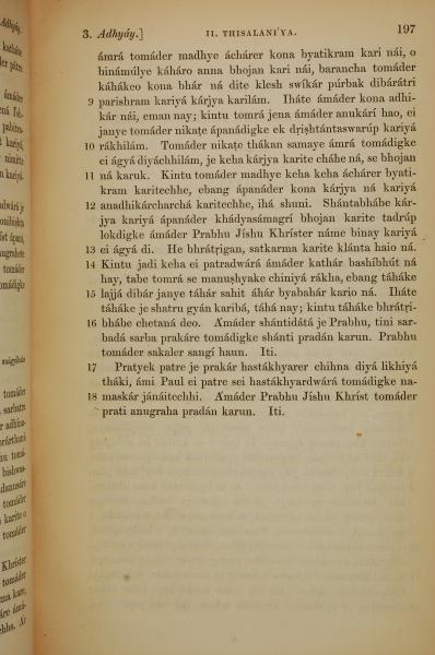 1839年孟加拉语新约全书 帖撒罗尼迦后书 3 章 9 节到 3 章 18 节