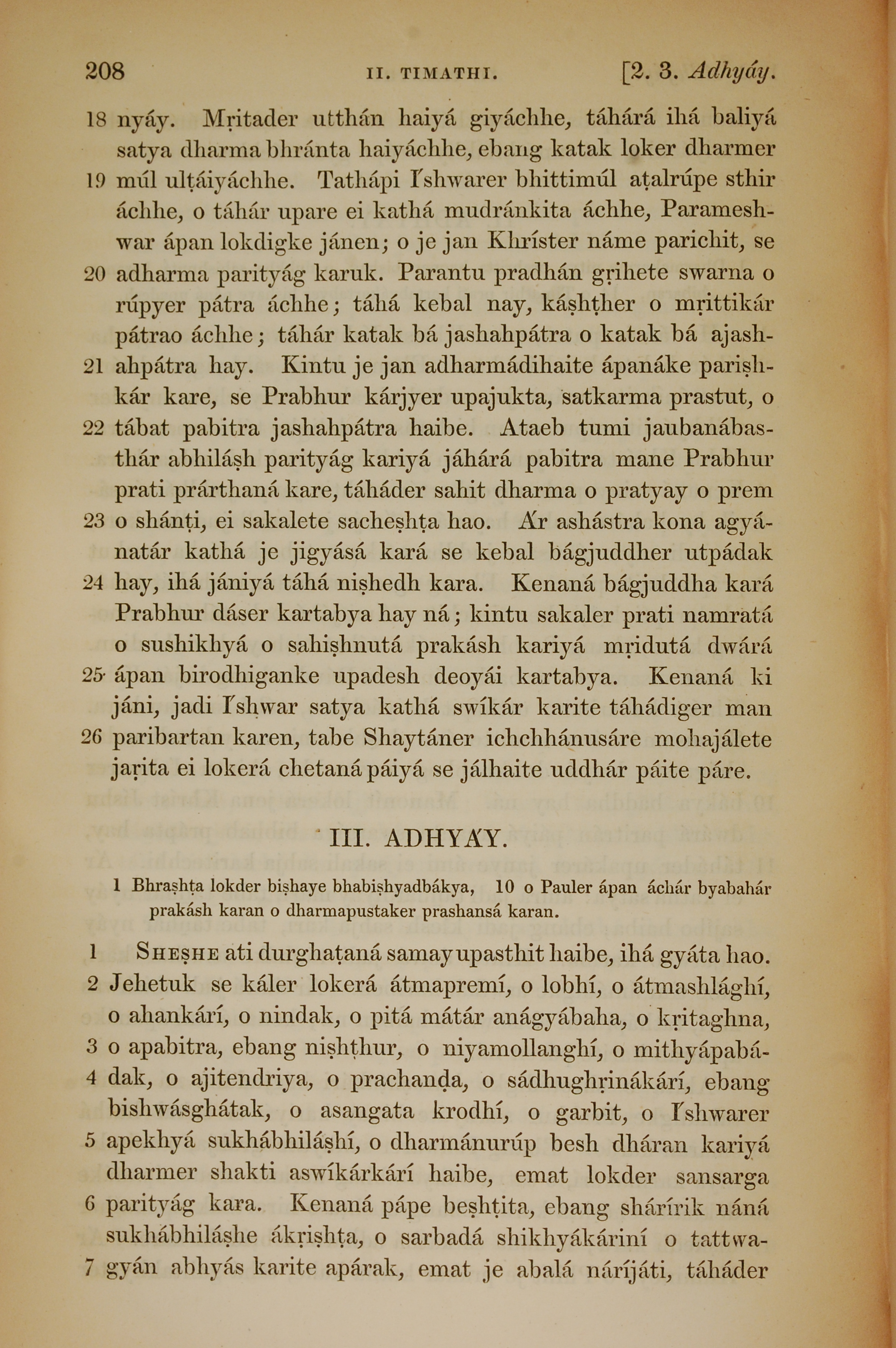 1839年孟加拉语新约全书 提摩太后书 2 章 18 节到 3 章 7 节