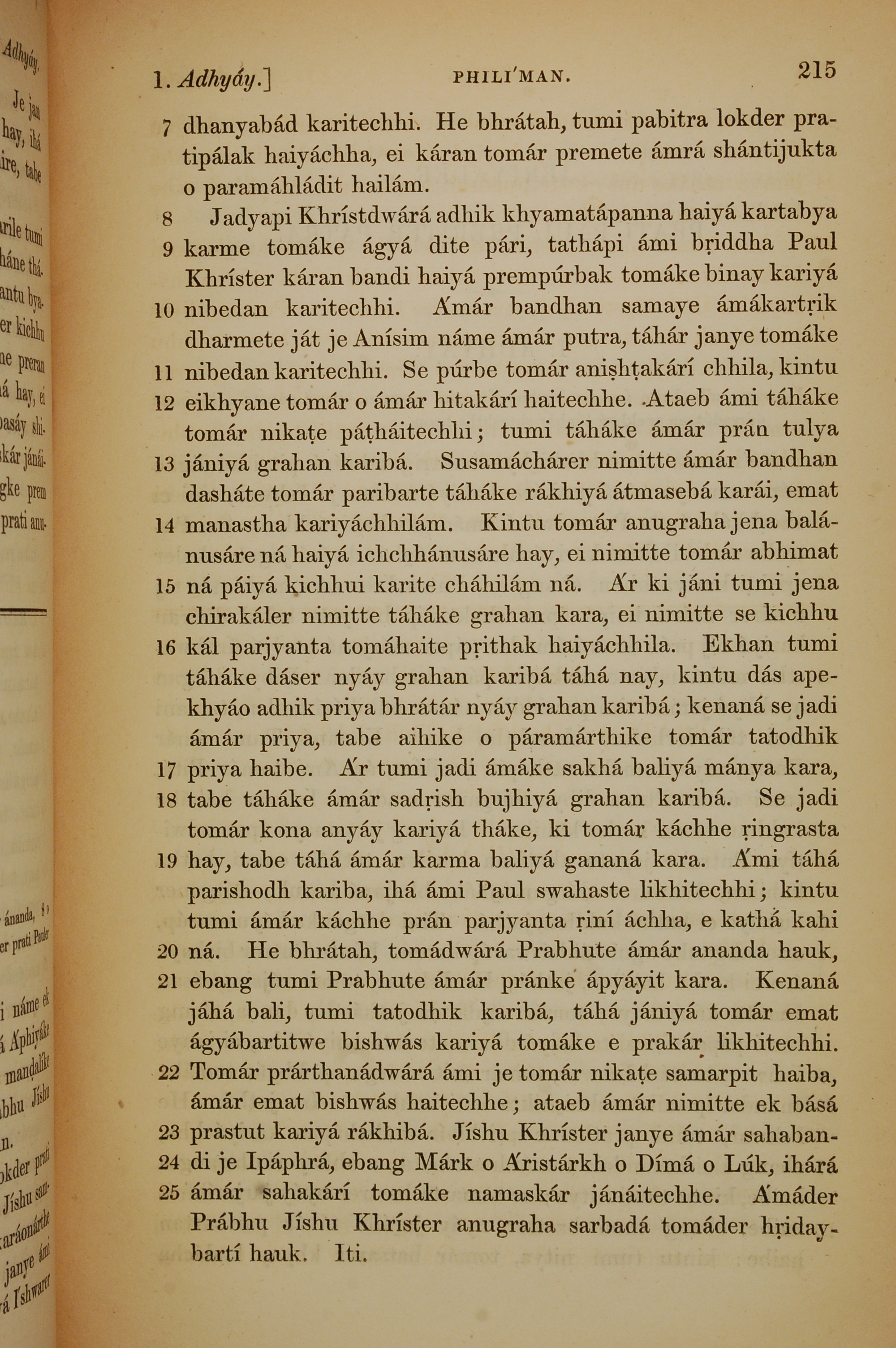 1839年孟加拉语新约全书 腓利门书 1 章 7 节到 1 章 25 节