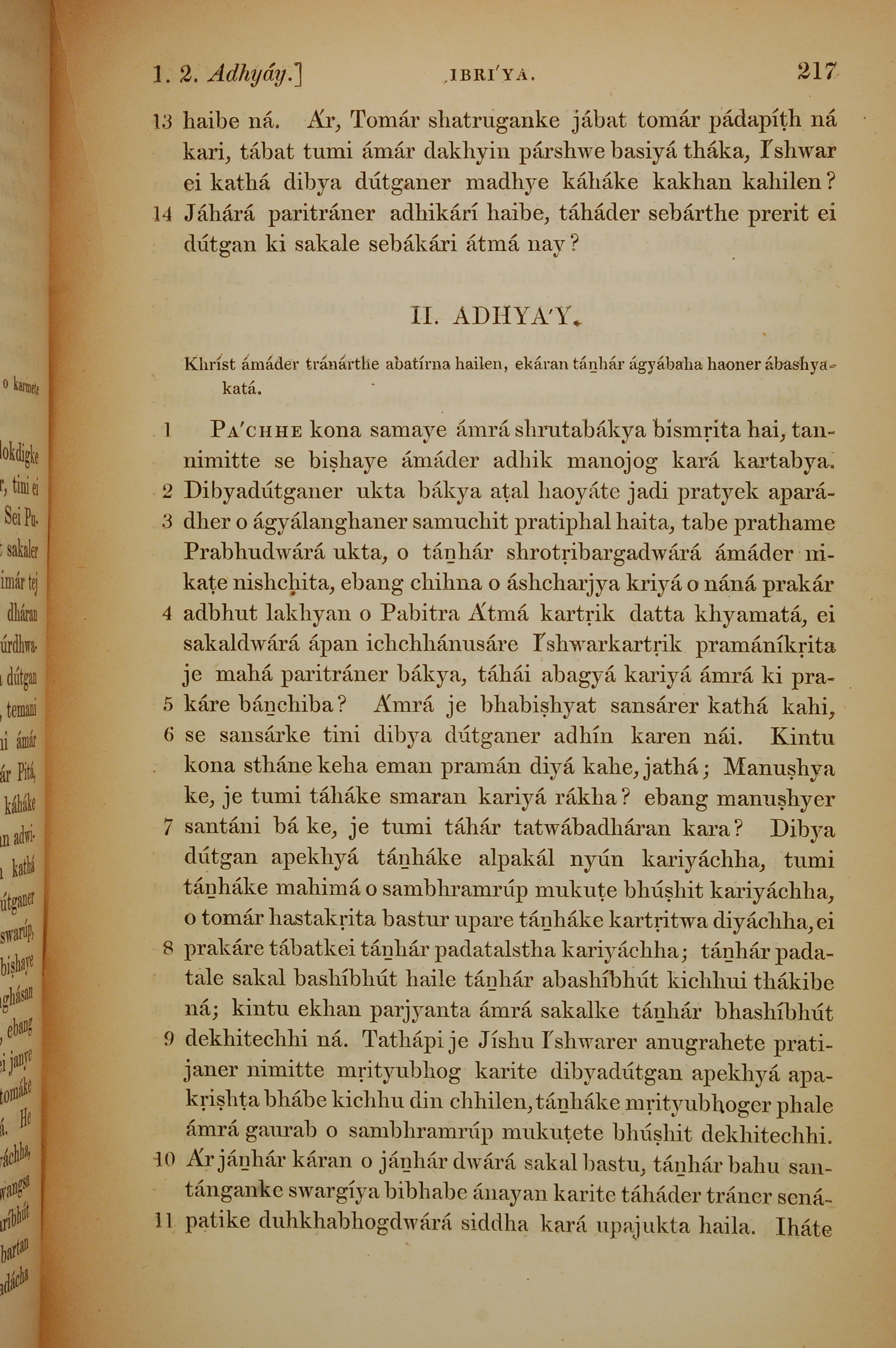 1839年孟加拉语新约全书 希伯来书 1 章 13 节到 2 章 11 节