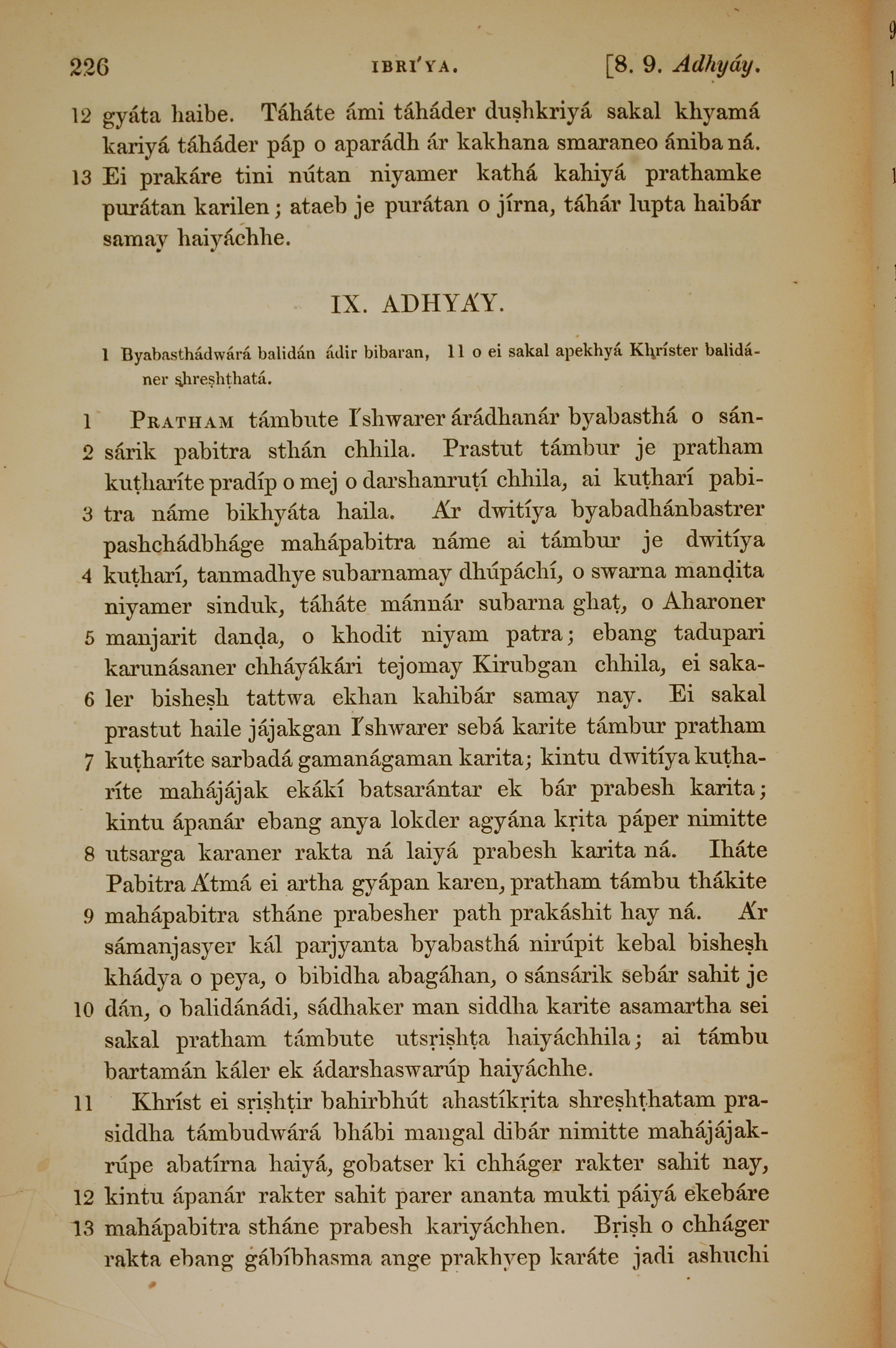 1839年孟加拉语新约全书 希伯来书 8 章 12 节到 9 章 13 节