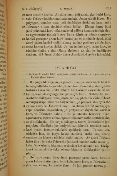 1839年孟加拉语新约全书 约翰一书 3 章 20 节到 4 章 8 节